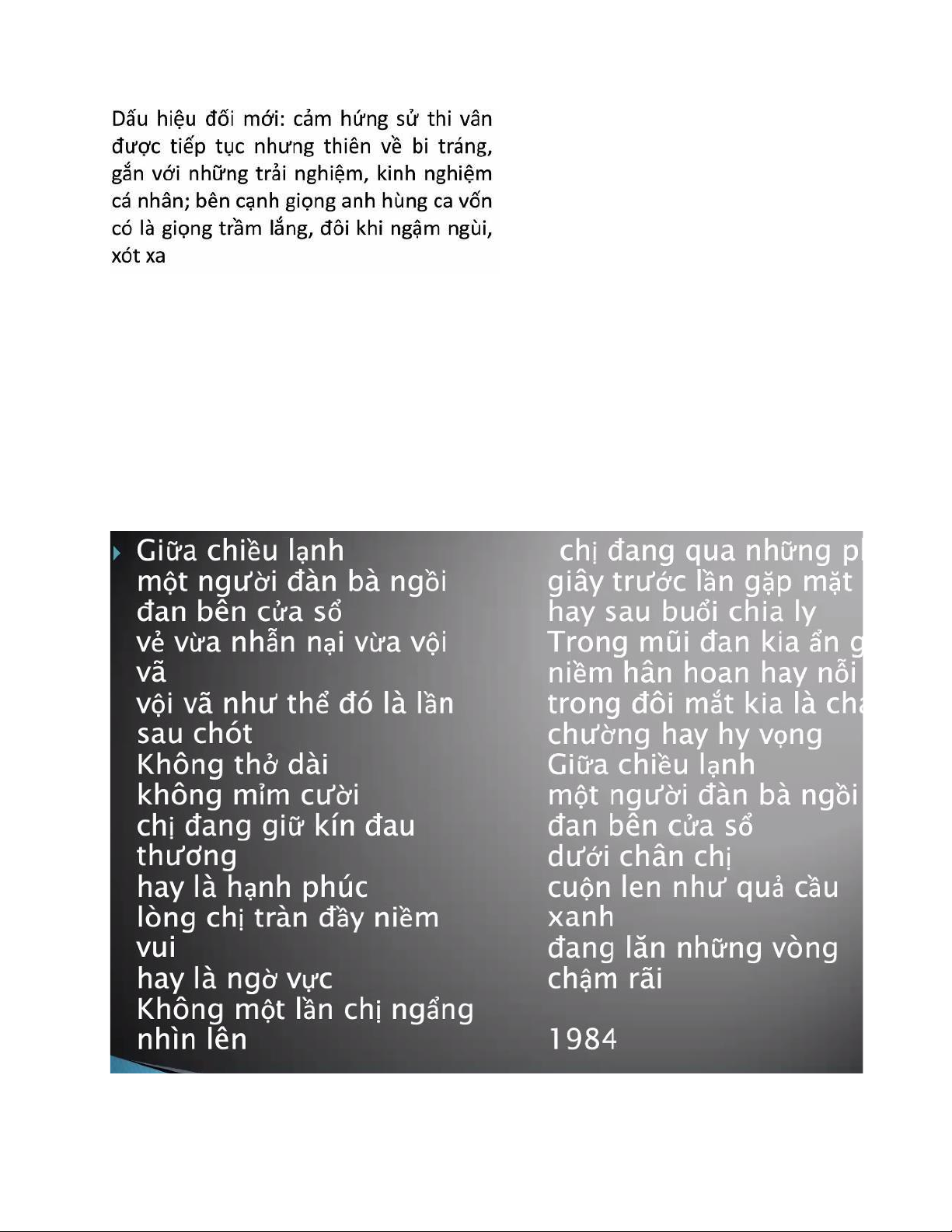 sâu mới, thiên về bi trạng, gắn với trải nghiệm với cá nhân, phân tích, chiêm nghiệm về