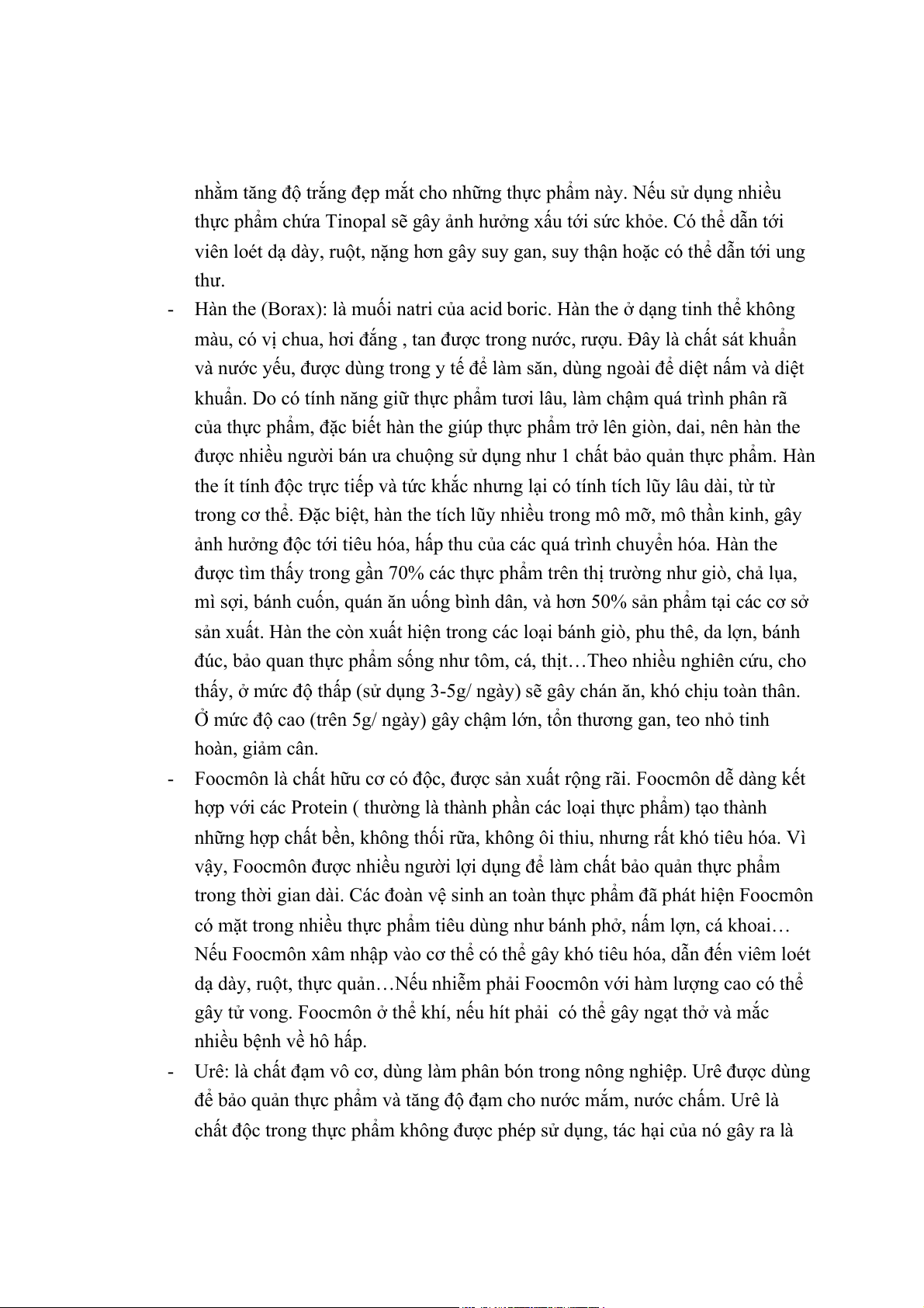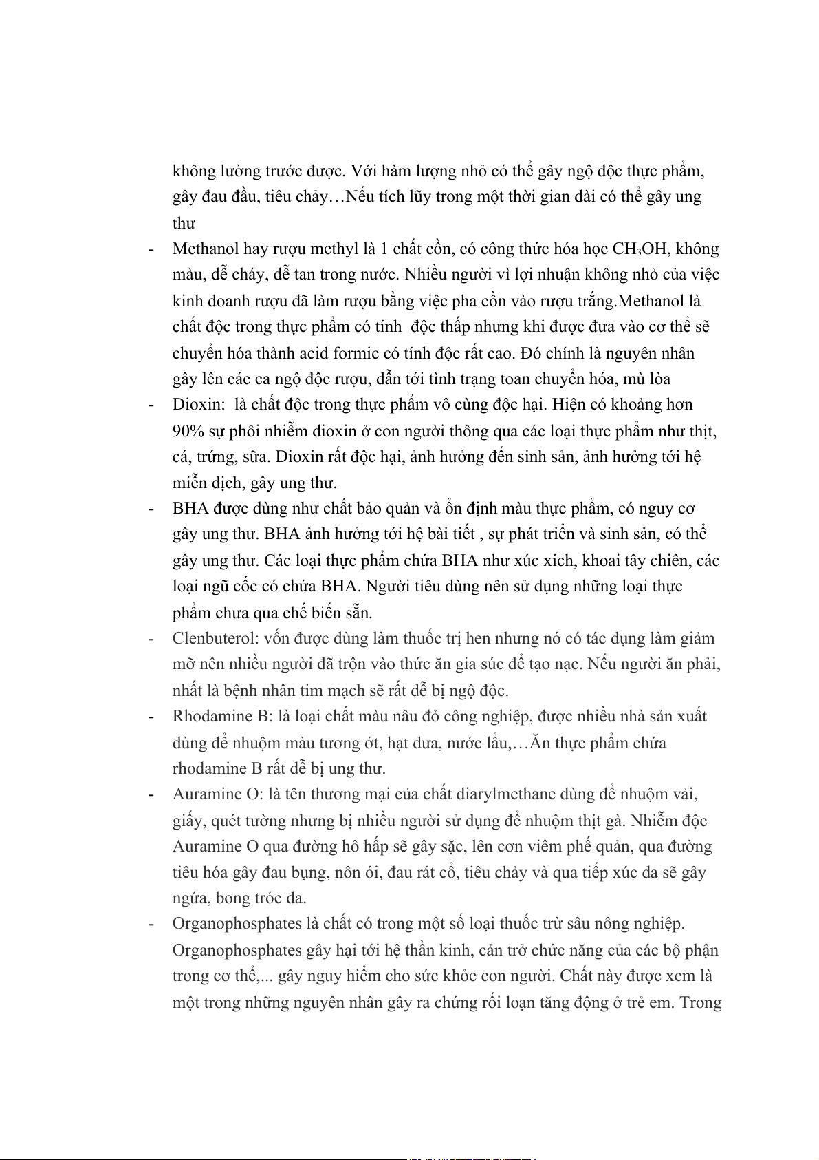 chất độc trong thực phẩm không được phép sử dụng, tác hại của nó gây ra là