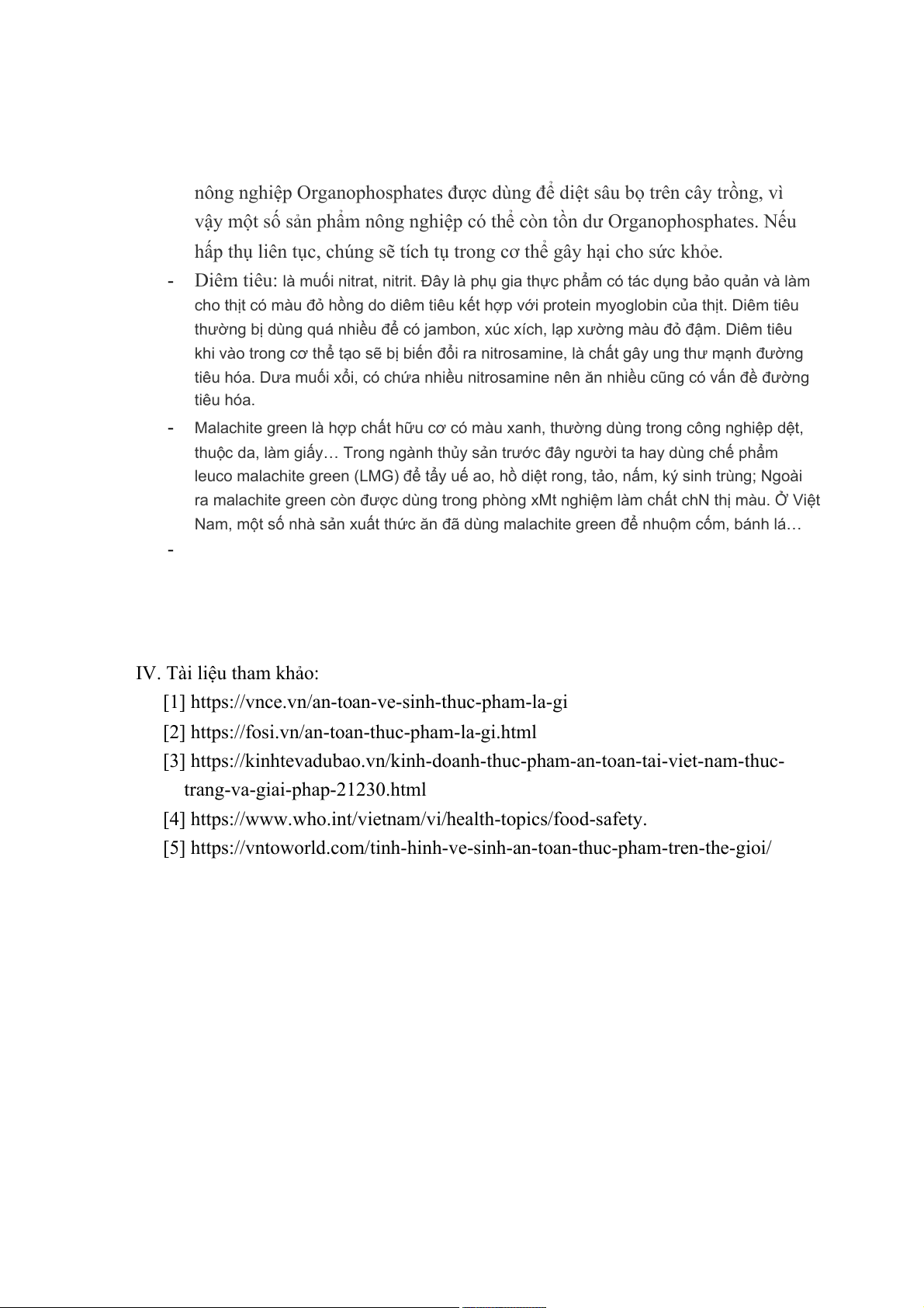 Nam, một số nhà sản xuất thức ăn đã dùng malachite green để nhuộm cốm, bánh lá… - IV. Tài liệu tham khảo: