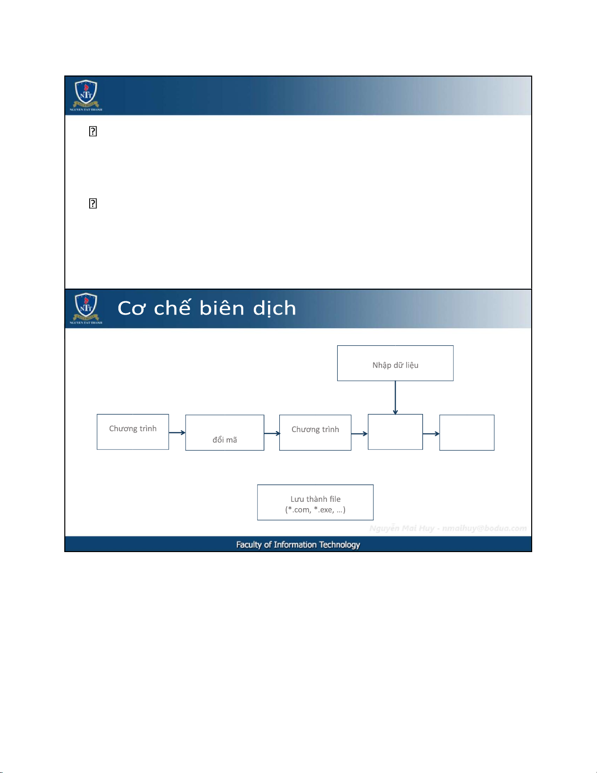 ược gọi là thời gian thực thi (Run-time) Biên dịch, chuyển Máy tính nguồn đích, mã máy thi hành Kết quả 10 lOMoAR cPSD| 45734214 10/7/2024