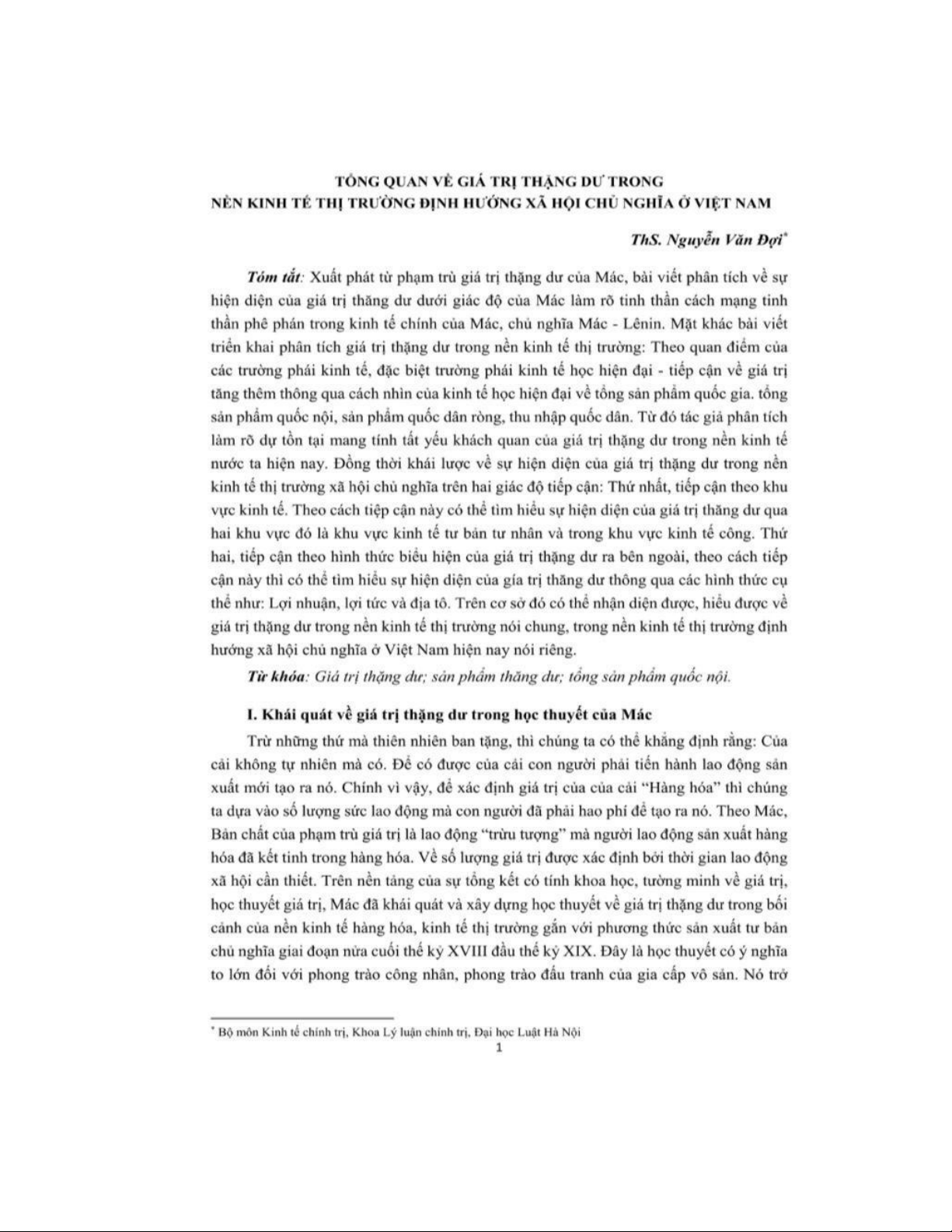 Tổng Quan Về Giá Trị Thặng Dư Trong Nền Kinh Tế Thị Trường Định Hướng Xã Hội Chủ Nghĩa | Môn Kinh tế chính trị - Trường Đại học Luật Hà Nội