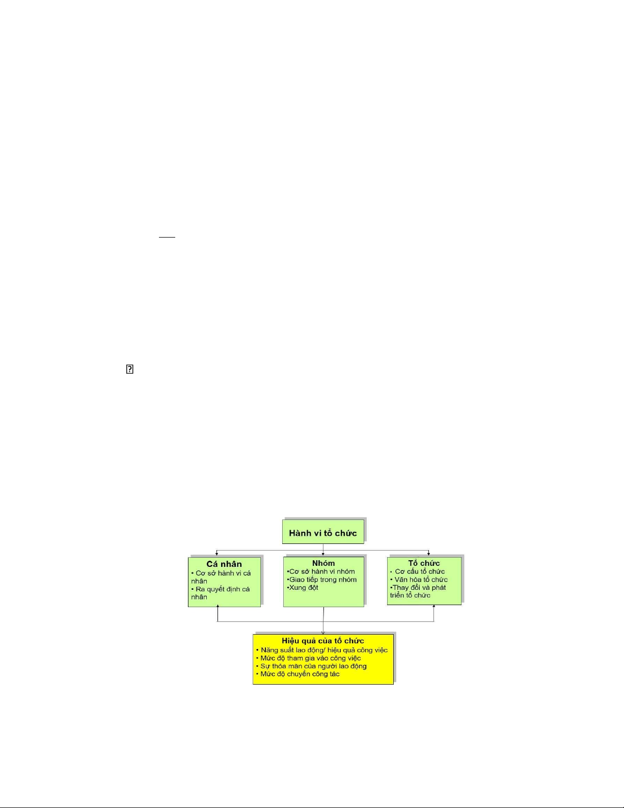 hiệu quả của tổ chức. + Hành vi của cá nhân + Hành vi của nhóm