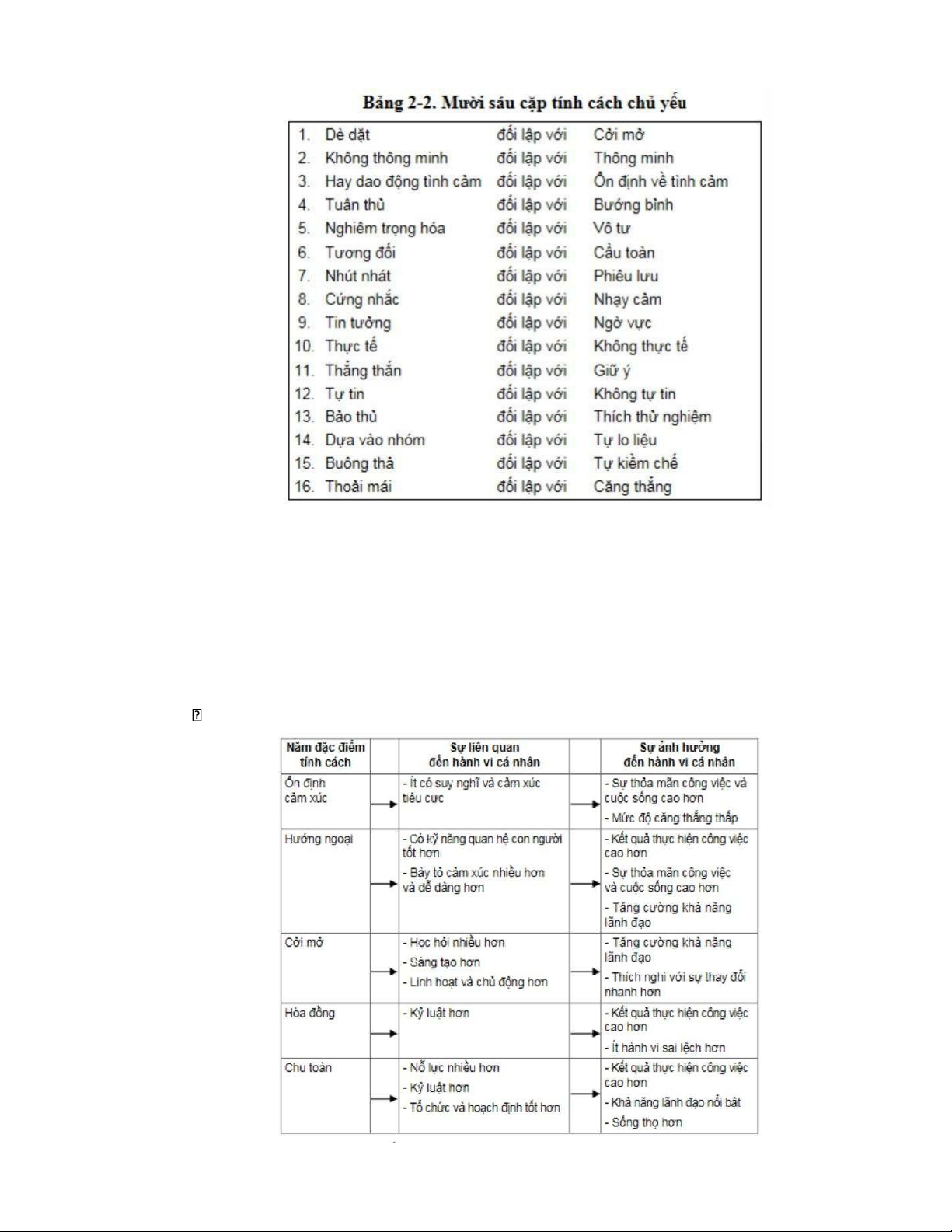 • Tính ổn định cảm xúc • Tính cởi mở