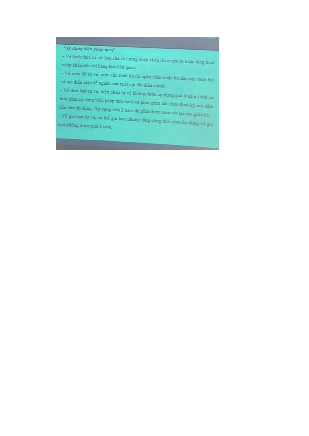 ● Biện pháp tự vệ là việc tạm thời hạn chế nhập khẩu đối vs 1 hoặc 1 số loại hàng