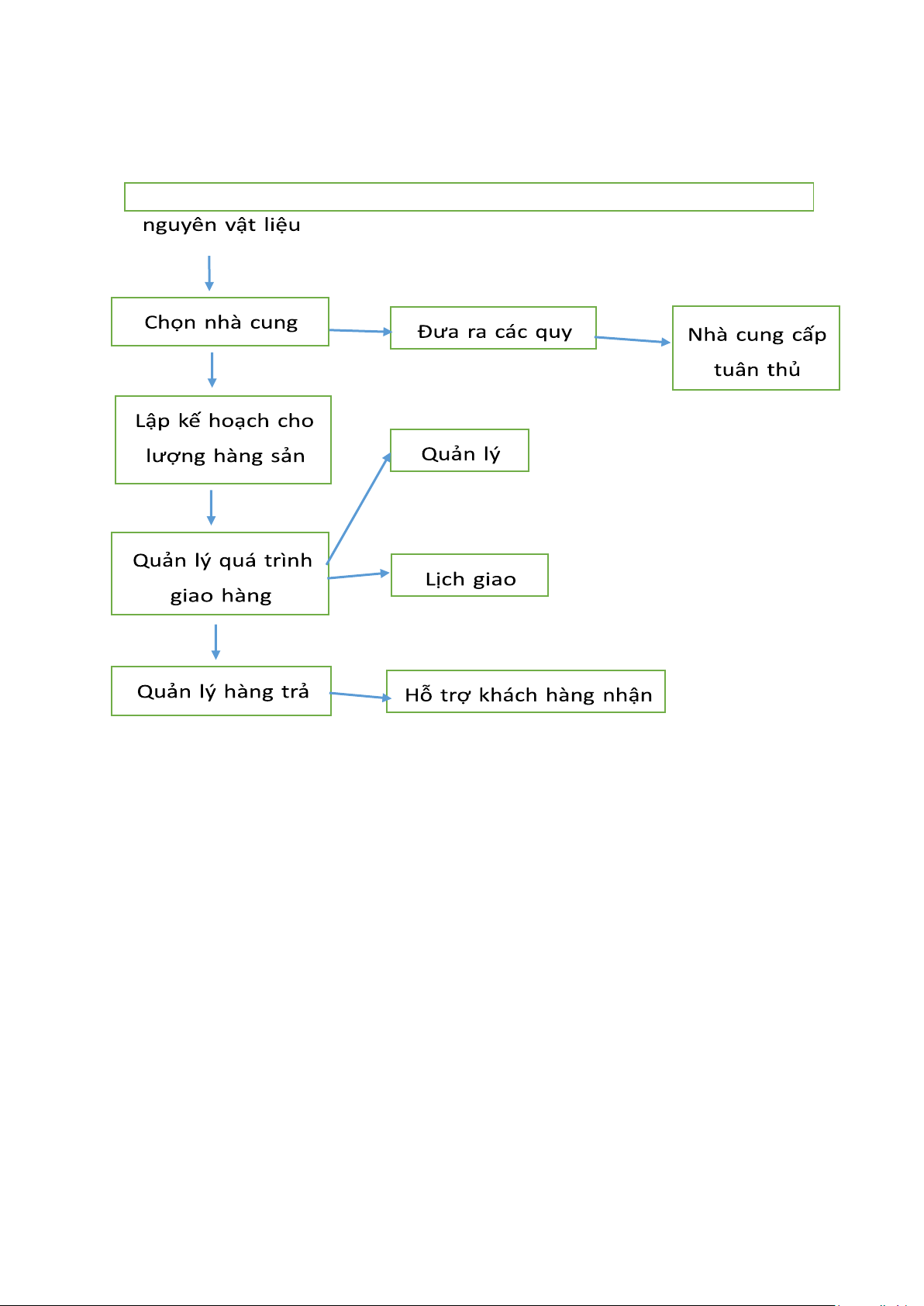 các hoạt động liên quan đến việc tìm nguồn hàng cung ứng, thu mua, vận chuyển, đầu ra của sản phẩm. lOMoAR cPSD| 58097008 Ví dụ: Lập kế hoạch mua