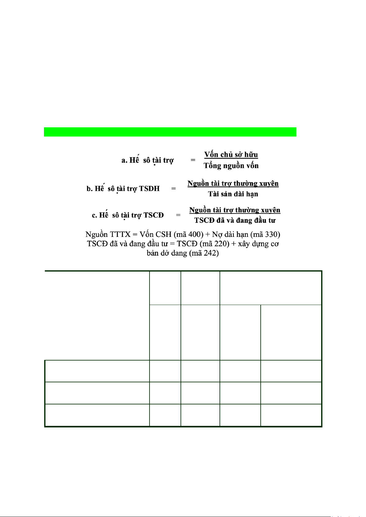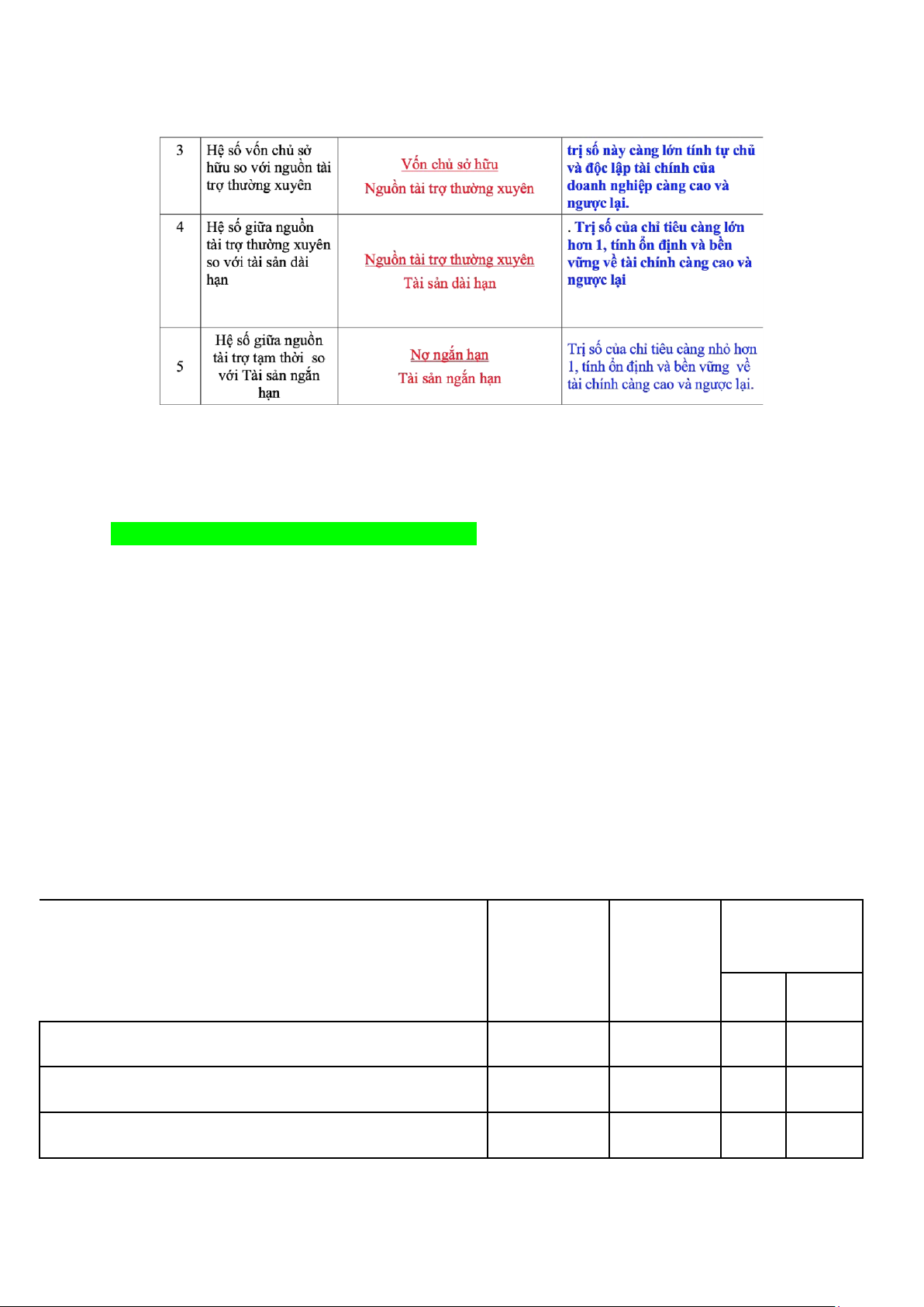 1. Phân tích cân bằng tài chính theo mức độ an toàn của nguồn tài trợ. lOMoAR cPSD| 58675420