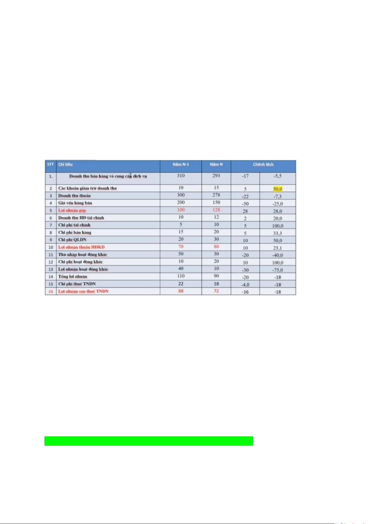 Năm N-4 Năm N-3 Năm N-2 Năm N-1 Năm N 1 . DTT ,00% 30 15 ,38% ,33% 13 ,88% 5 . Giá vốn 2 38 ,67% 17 ,31% 14 ,75% ,71% 5 . Lợi nhuậ 3 n gộp 4 ,00% 7 ,69% 7 ,14% 6 ,67% *Nhận xét: lOMoAR cPSD| 58675420