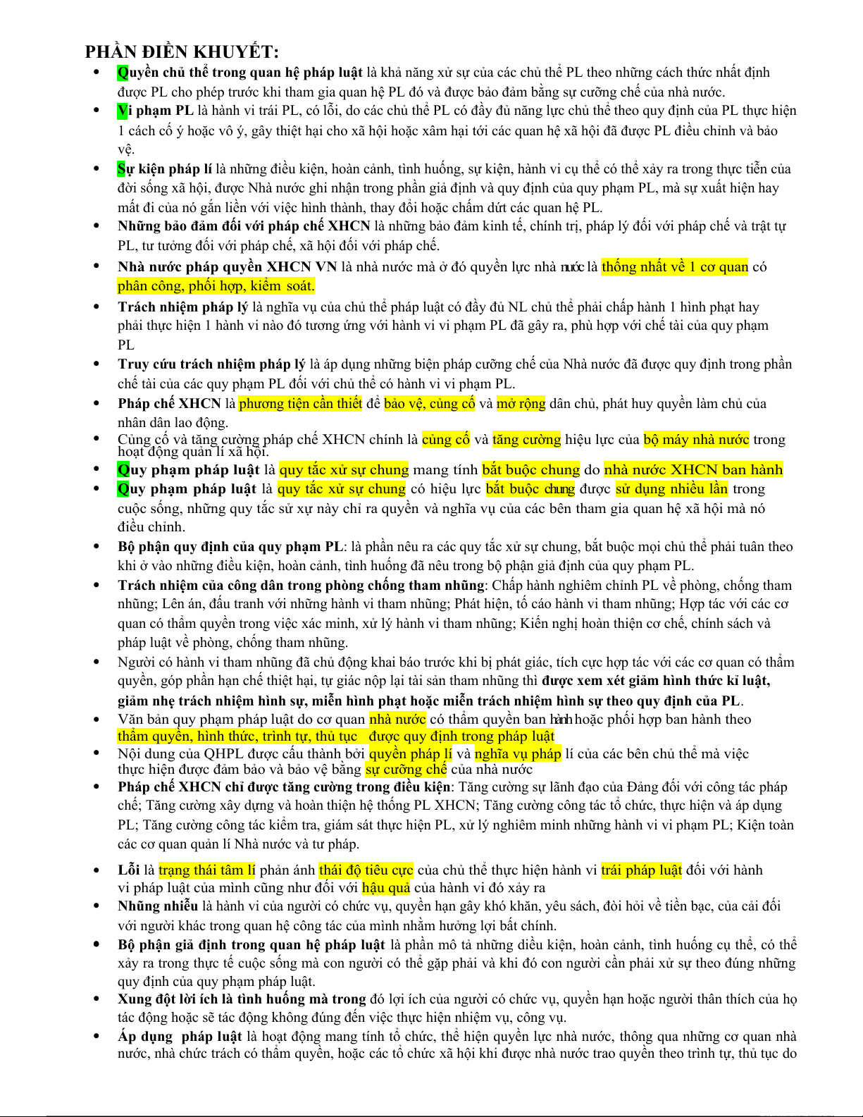 Câu 12: Trong quan hệ mua bán, khách thể của quan hệ pháp luật là -> cái muốn đạt được khi tham gia quan hệ PL
