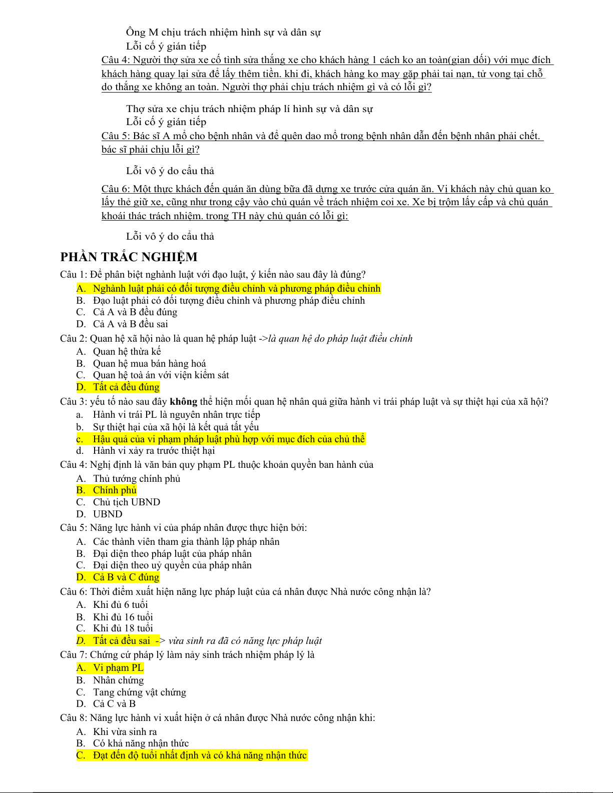 khoái thác trách nhiệm. trong TH này chủ quán có lỗi gì: Lỗi vô ý do cẩu thả PHẦN TRẮC NGHIỆM
