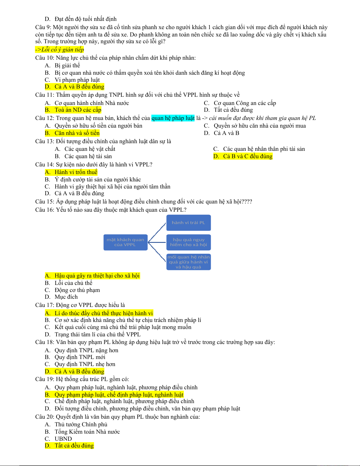 Câu 8: Năng lực hành vi xuất hiện ở cá nhân được Nhà nước công nhận khi: A. Khi vừa sinh ra