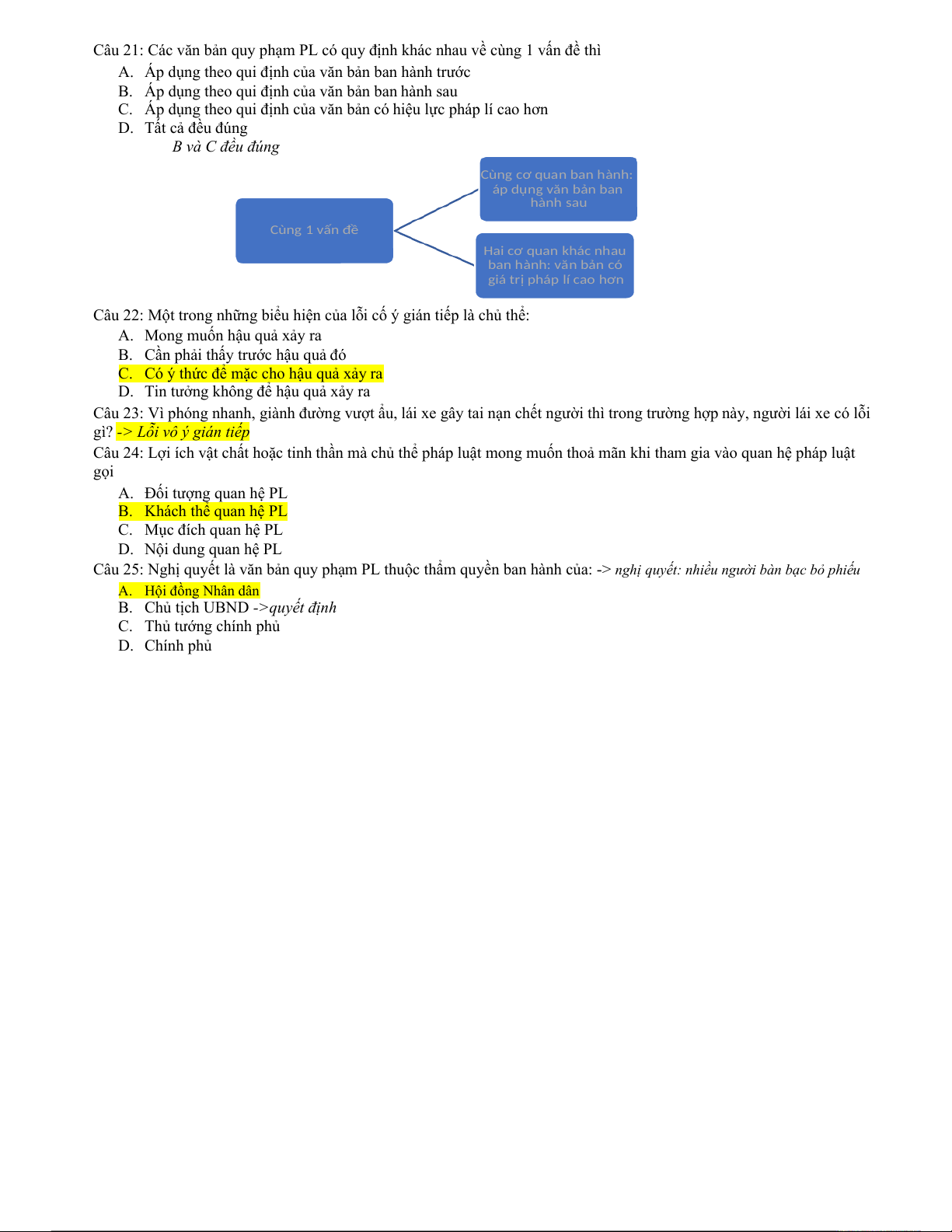 Câu 21: Các văn bản quy phạm PL có quy định khác nhau về cùng 1 vấn đề thì