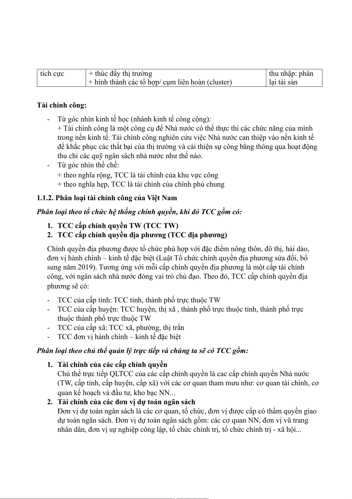 1.1.2. Phân loại tài chính công của Việt Nam