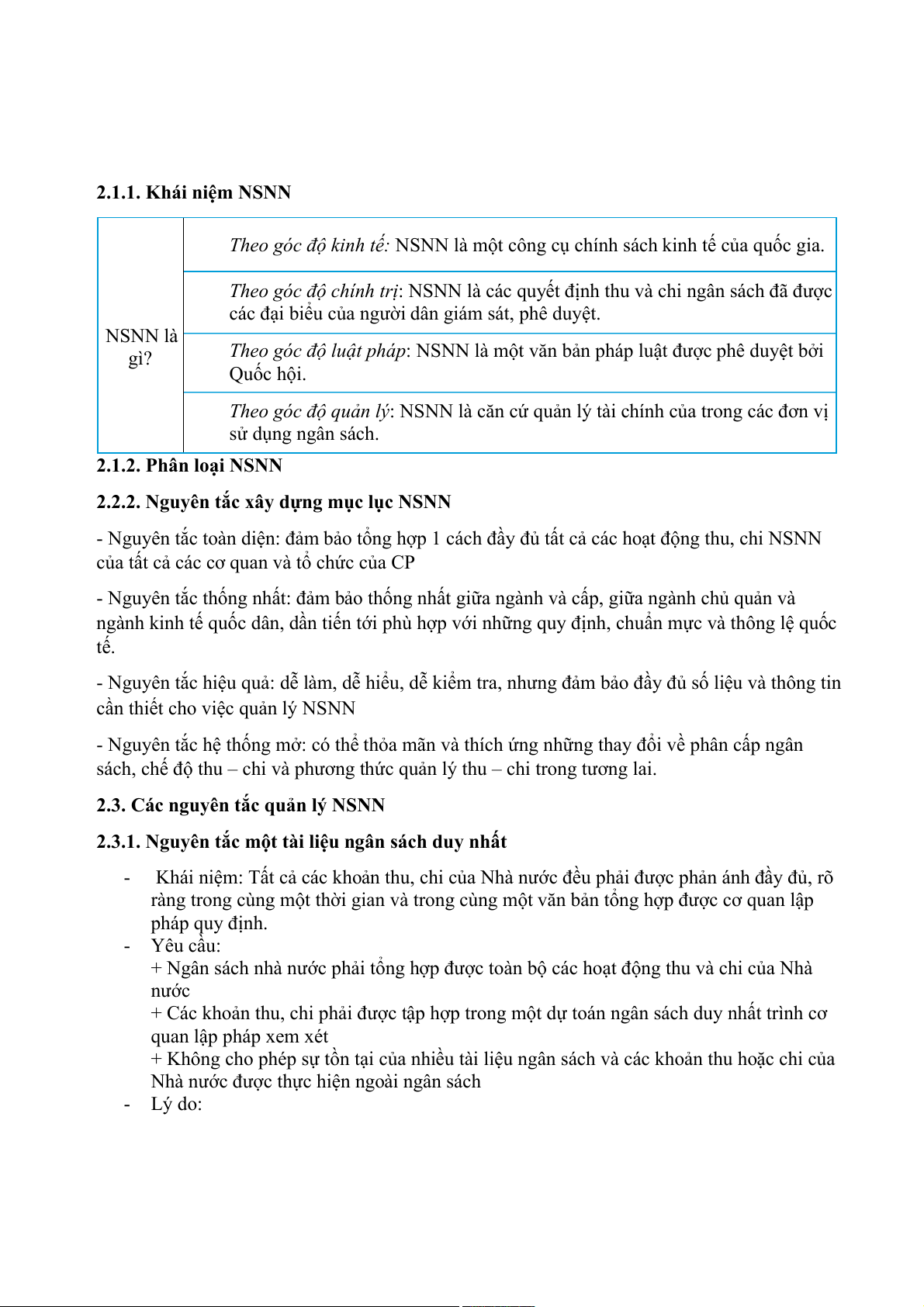 2.3. Các nguyên tắc quản lý NSNN