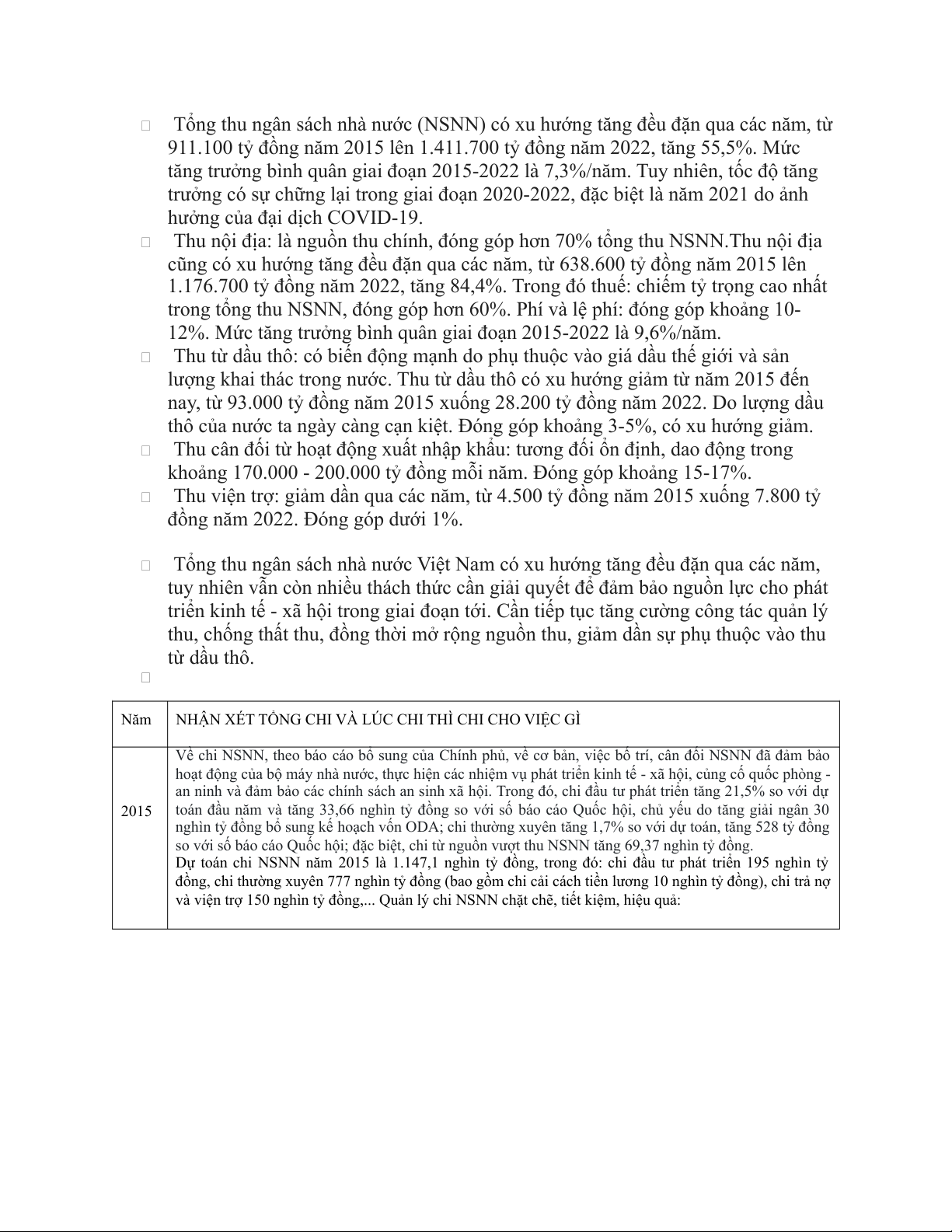 Thu nội địa: là nguồn thu chính, đóng góp hơn 70% tổng thu NSNN.Thu nội địa
