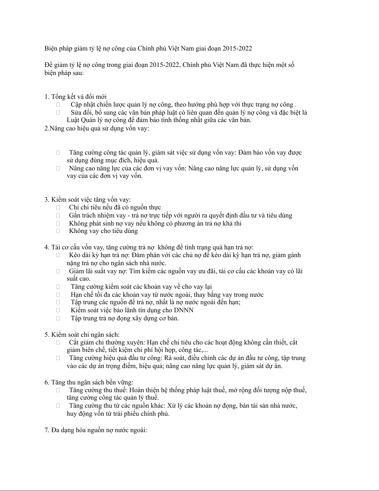 Biện pháp giảm tỷ lệ nợ công của Chính phủ Việt Nam giai đoạn 2015-2022