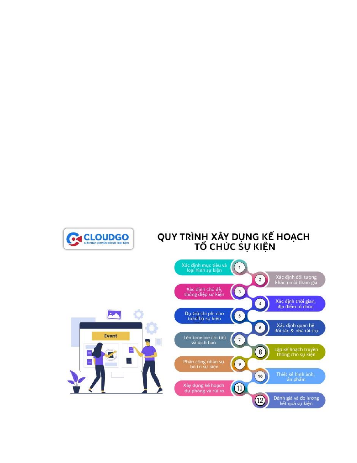 thực tế. Dưới đây là 12 bước cơ bản tạo nên một kế hoạch tổ chức sự kiện chi tiết,