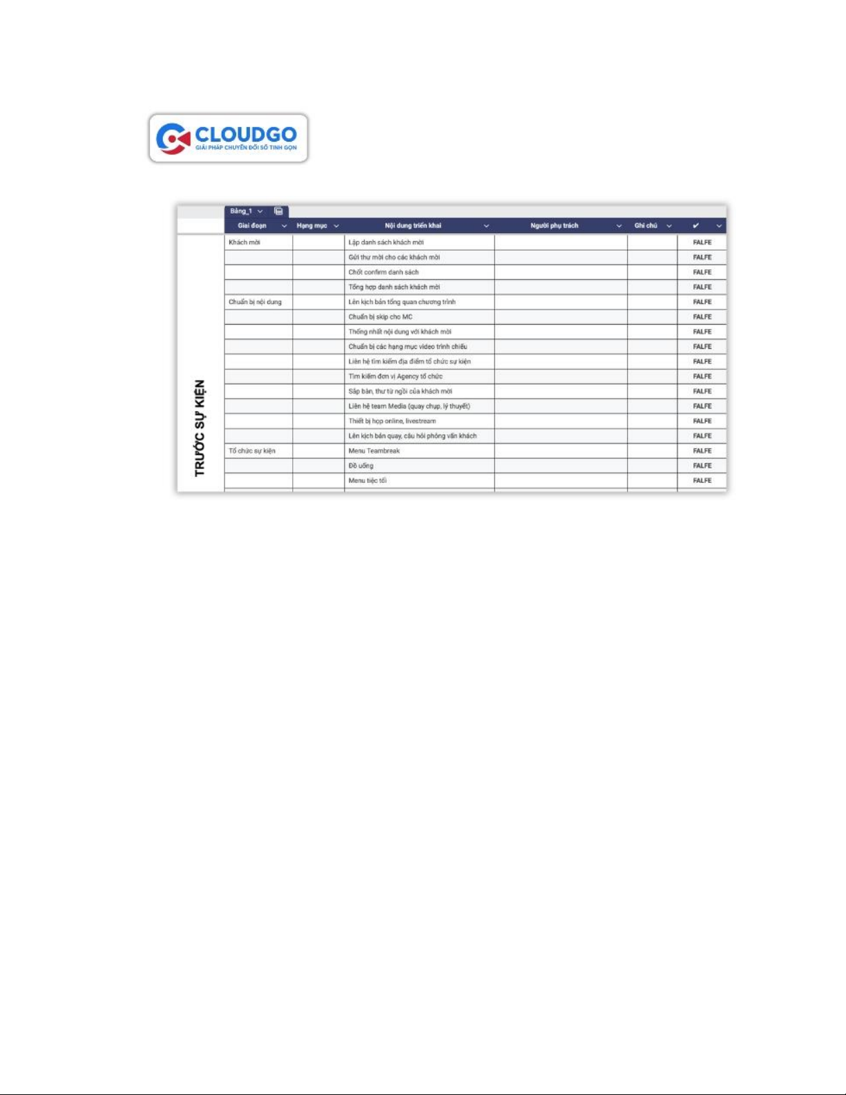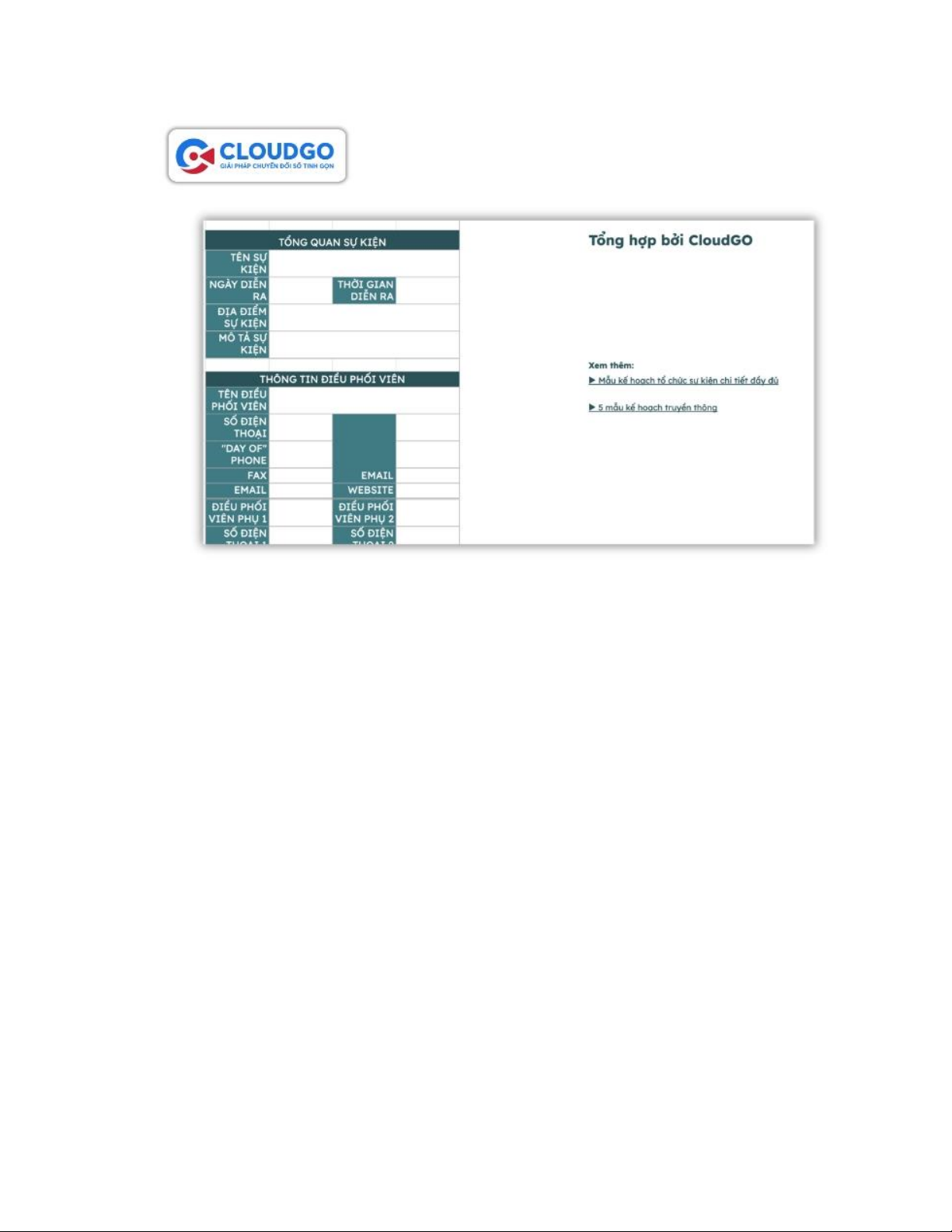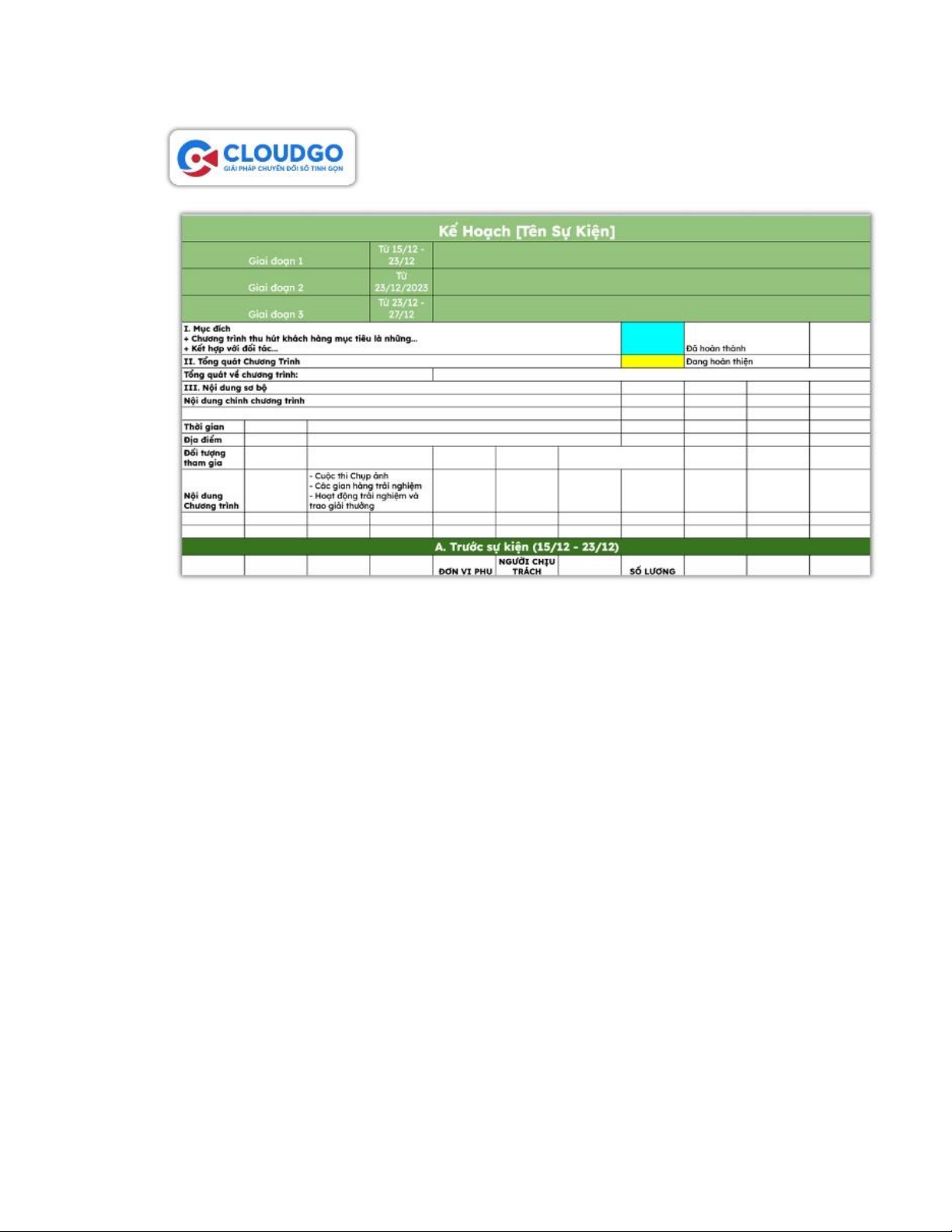 mẫu kế hoạch tổ chức sự kiện bằng file Excel mà CloudGO đã cung cấp sẽ là công