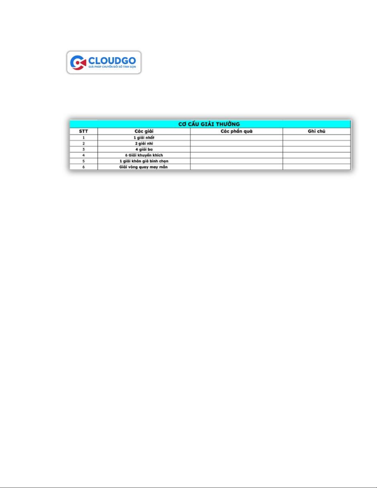Mẫu cơ cấu giải thưởng hỗ trợ xây dựng hệ thống giải thưởng rõ ràng và minh bạch