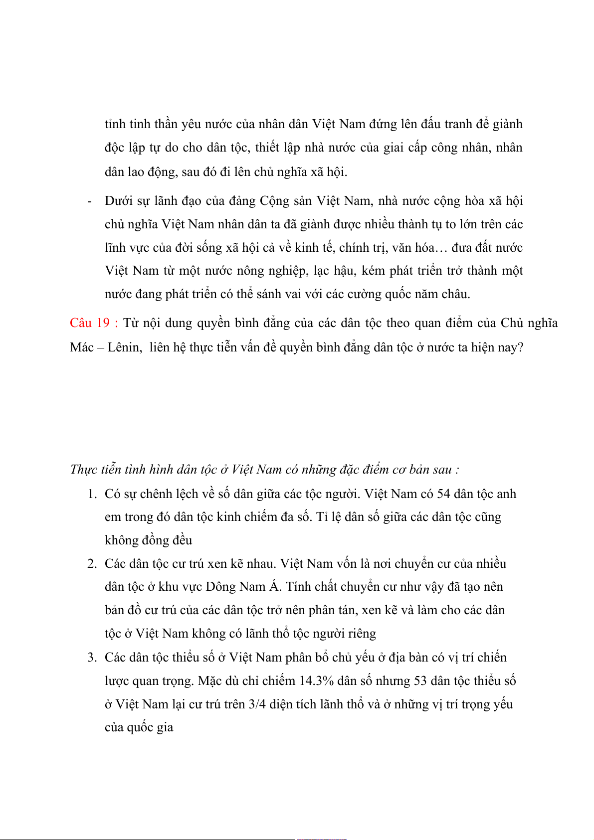 Câu 19 : Từ nội dung quyền bình đẳng của các dân tộc theo quan điểm của Chủ nghĩa