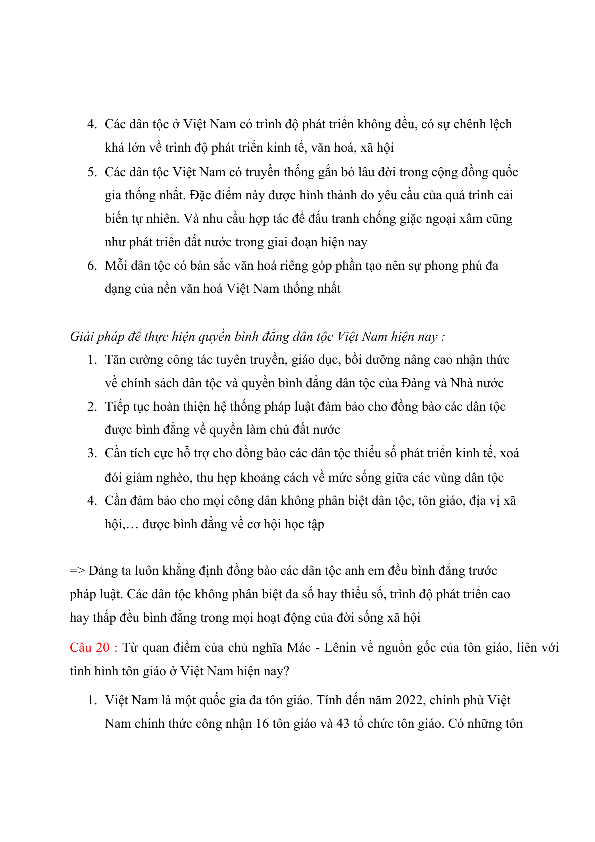 Câu 20 : Từ quan điểm của chủ nghĩa Mác - Lênin về nguồn gốc của tôn giáo, liên với