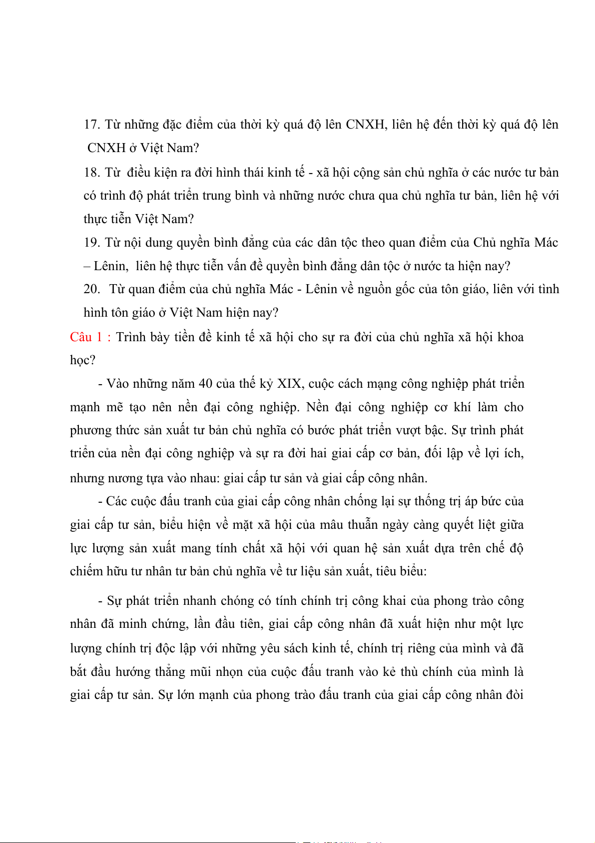 Câu 1 : Trình bày tiền đề kinh tế xã hội cho sự ra đời của chủ nghĩa xã hội khoa học?