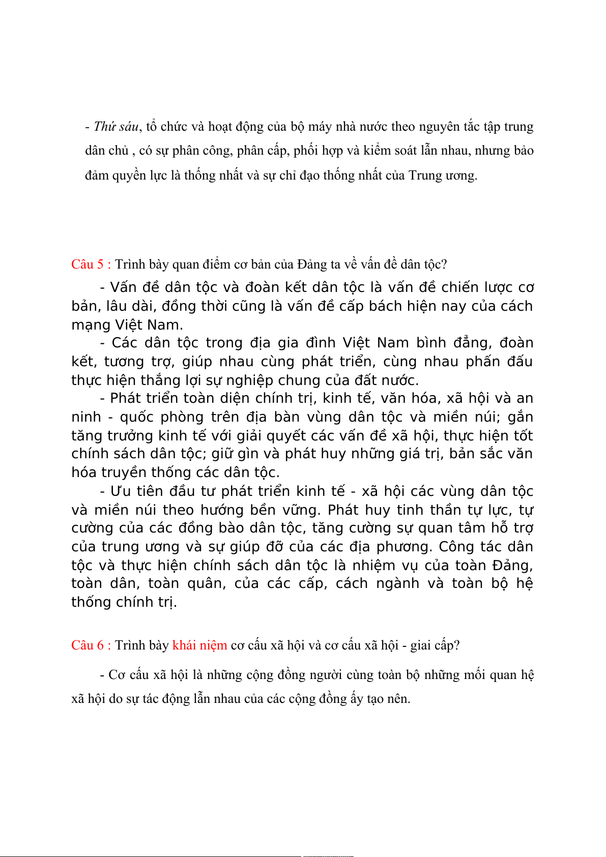 Câu 5 : Trình bày quan điểm cơ bản của Đảng ta về vấn đề dân tộc?