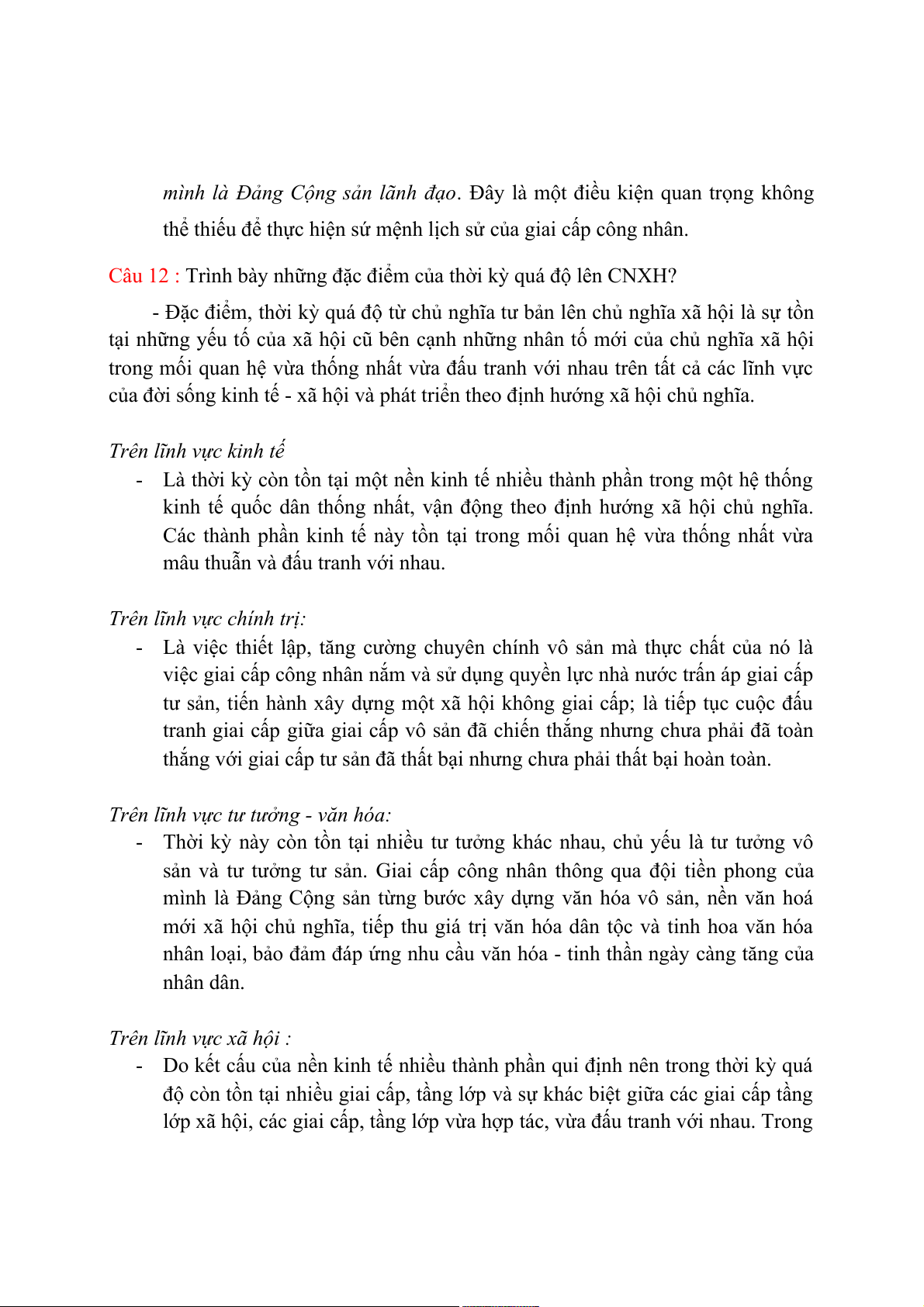 12.Trình bày những đặc điểm của thời kỳ quá độ lên CNXH?