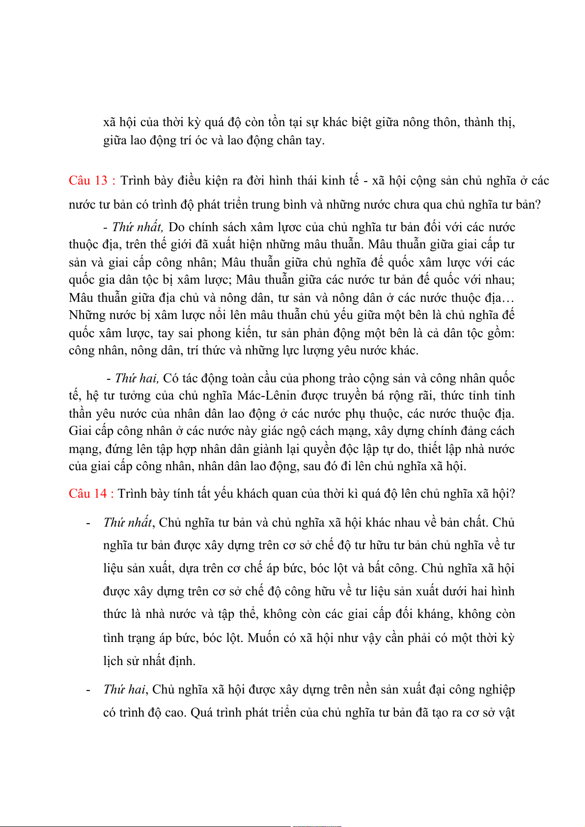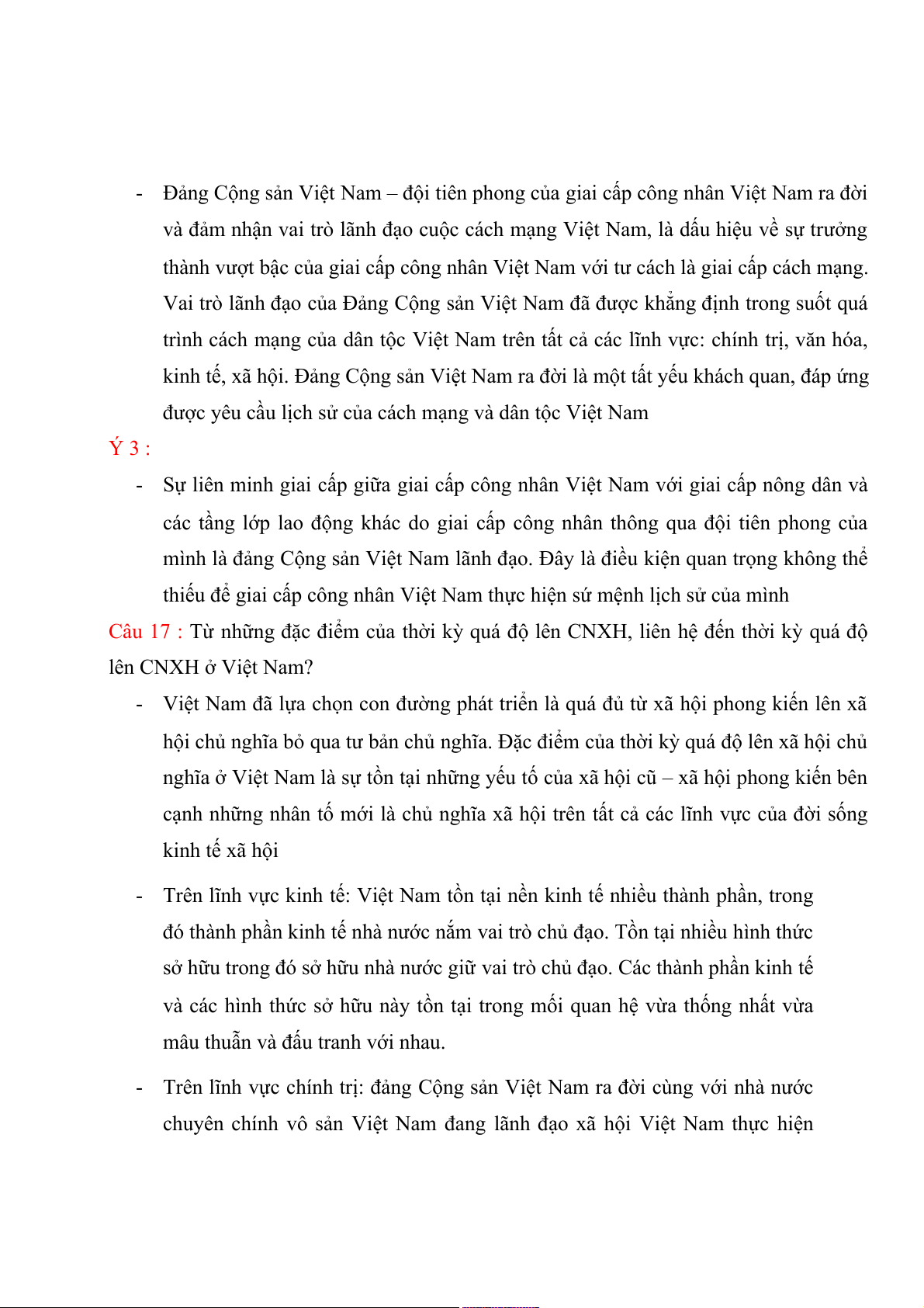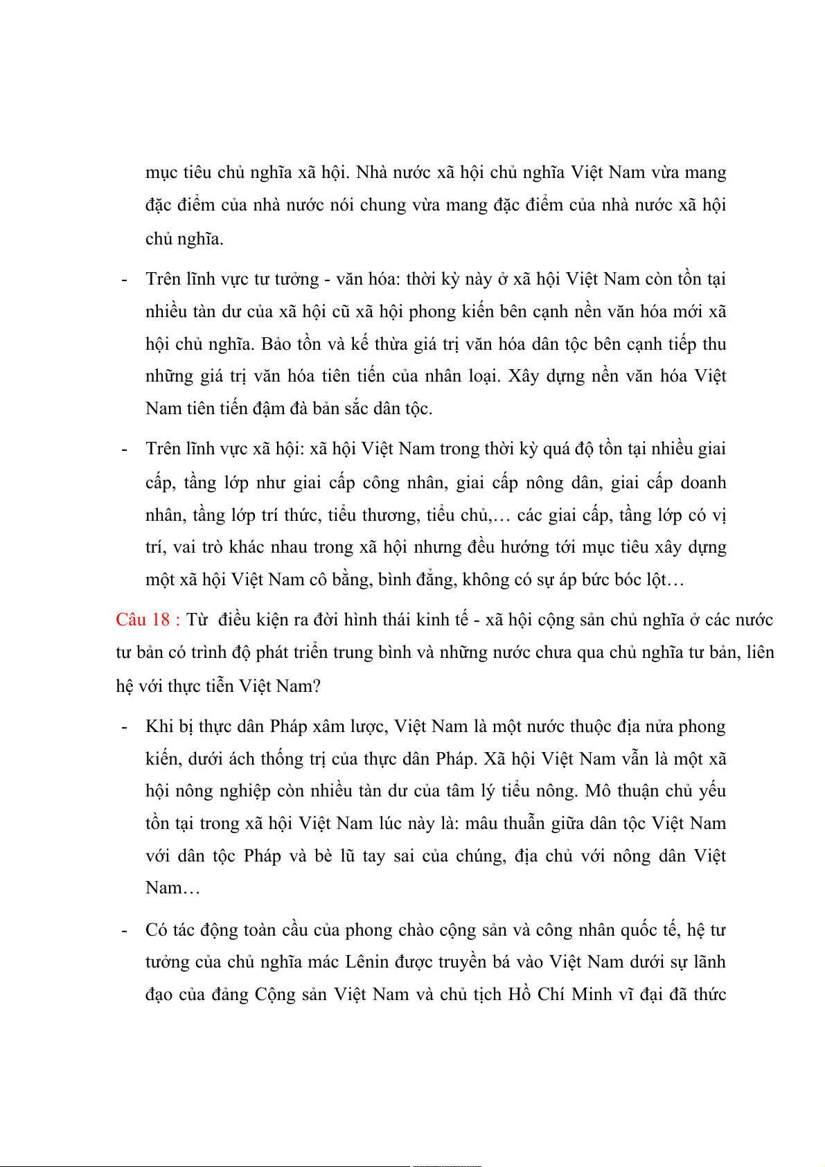 Câu 17 : Từ những đặc điểm của thời kỳ quá độ lên CNXH, liên hệ đến thời kỳ quá độ lên CNXH ở Việt Nam?
