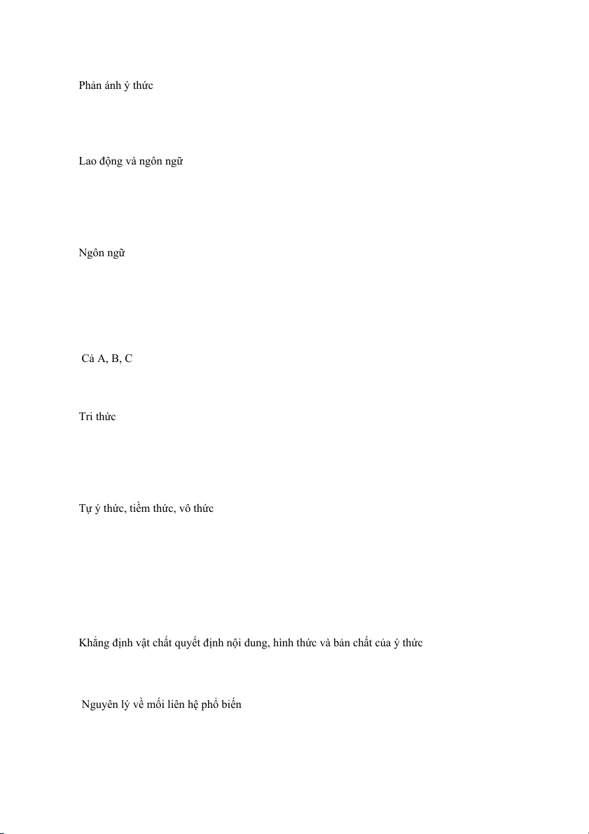Câu 125. Phản ánh là thuộc tính của những loại nào? A