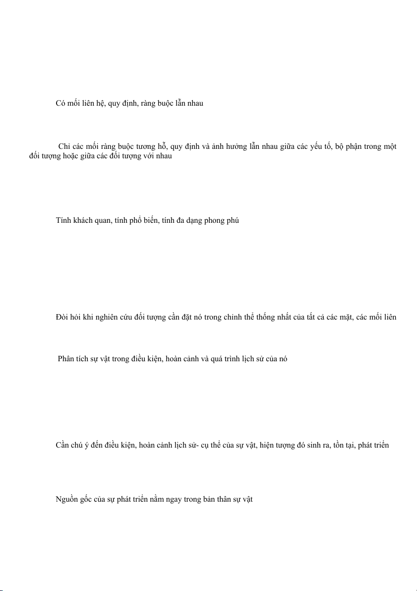 Câu 11. Chỉ ra đặc điểm của phương pháp biện chứng? A