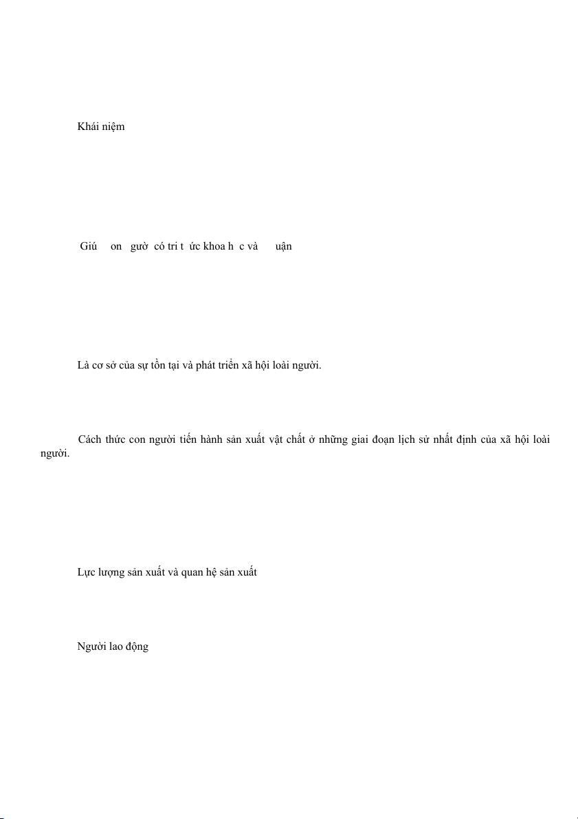 Công cụ lao động và đối tượng lao động Đáp án C