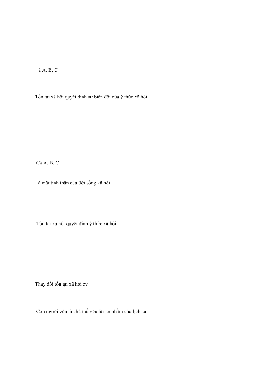 Câu 118. Quan điểm nào dưới đây là của chủ nghĩa duy vật biện chứng? A
