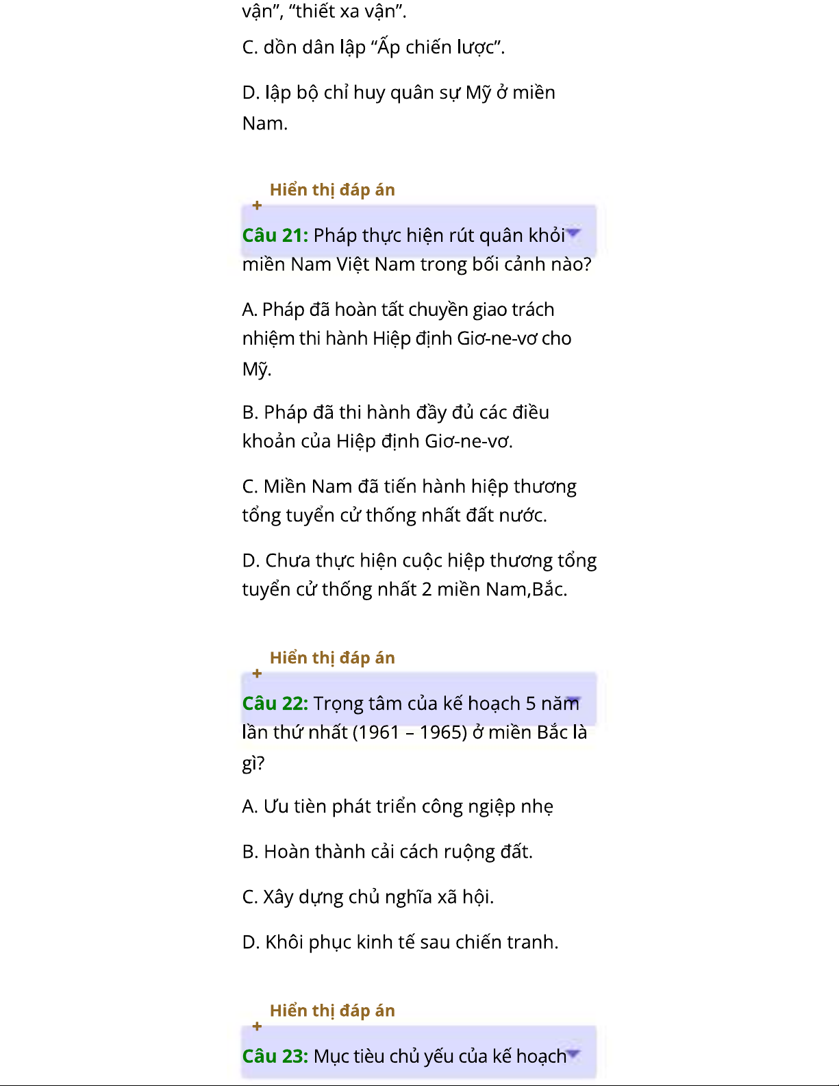 TOP 40 câu Trắc nghiệm Lịch sử 12 Bài 21 (có đáp án 2023)