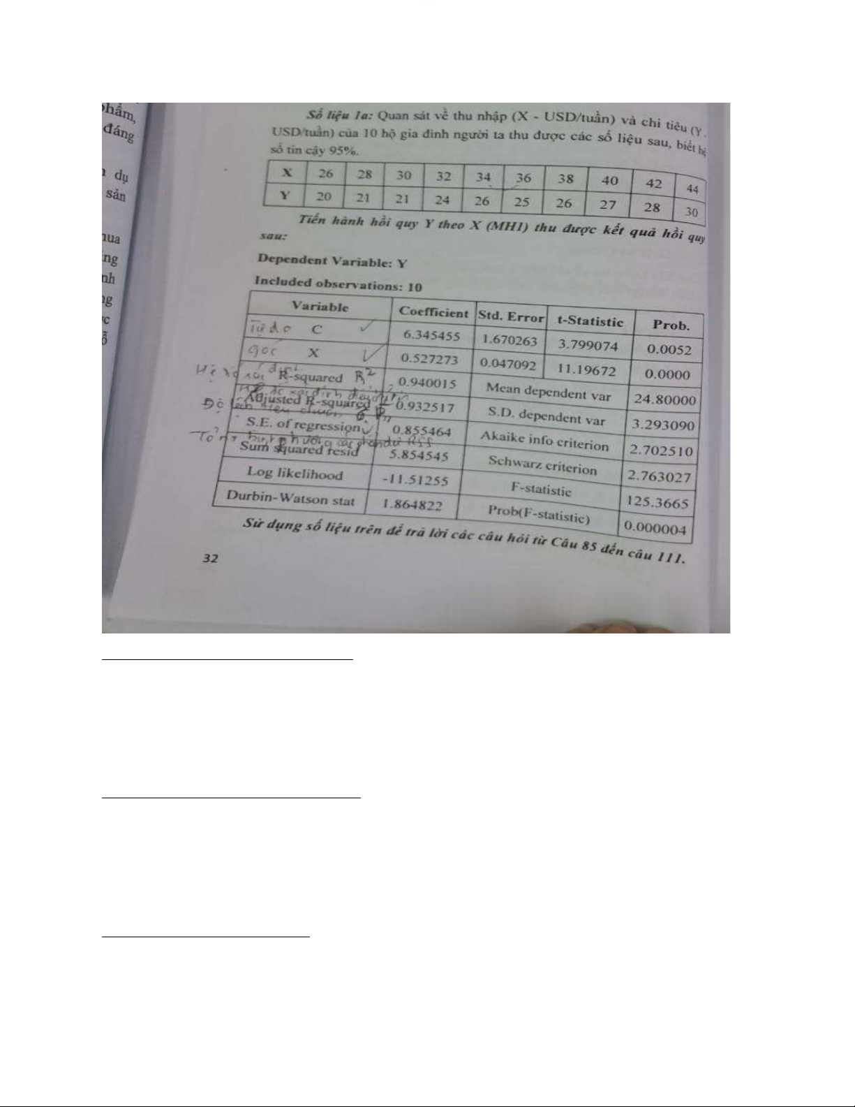 t heo X,thu được hàm hồi quy Y i=. Đ