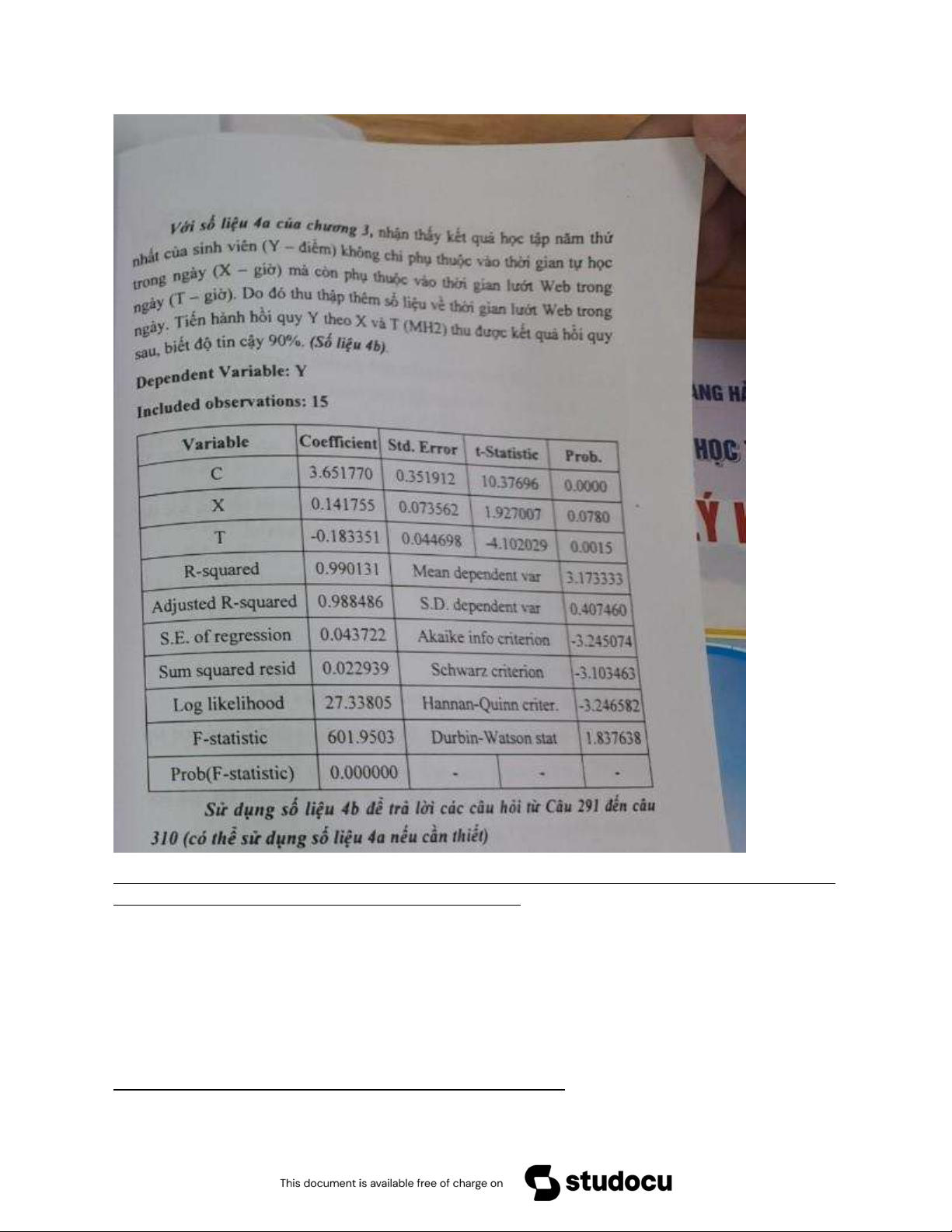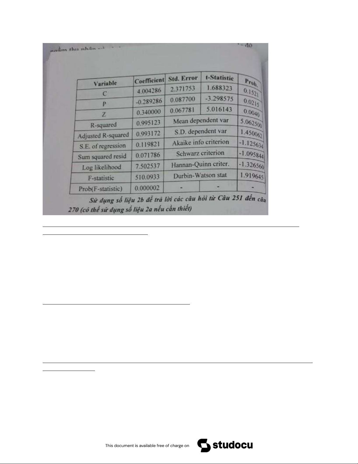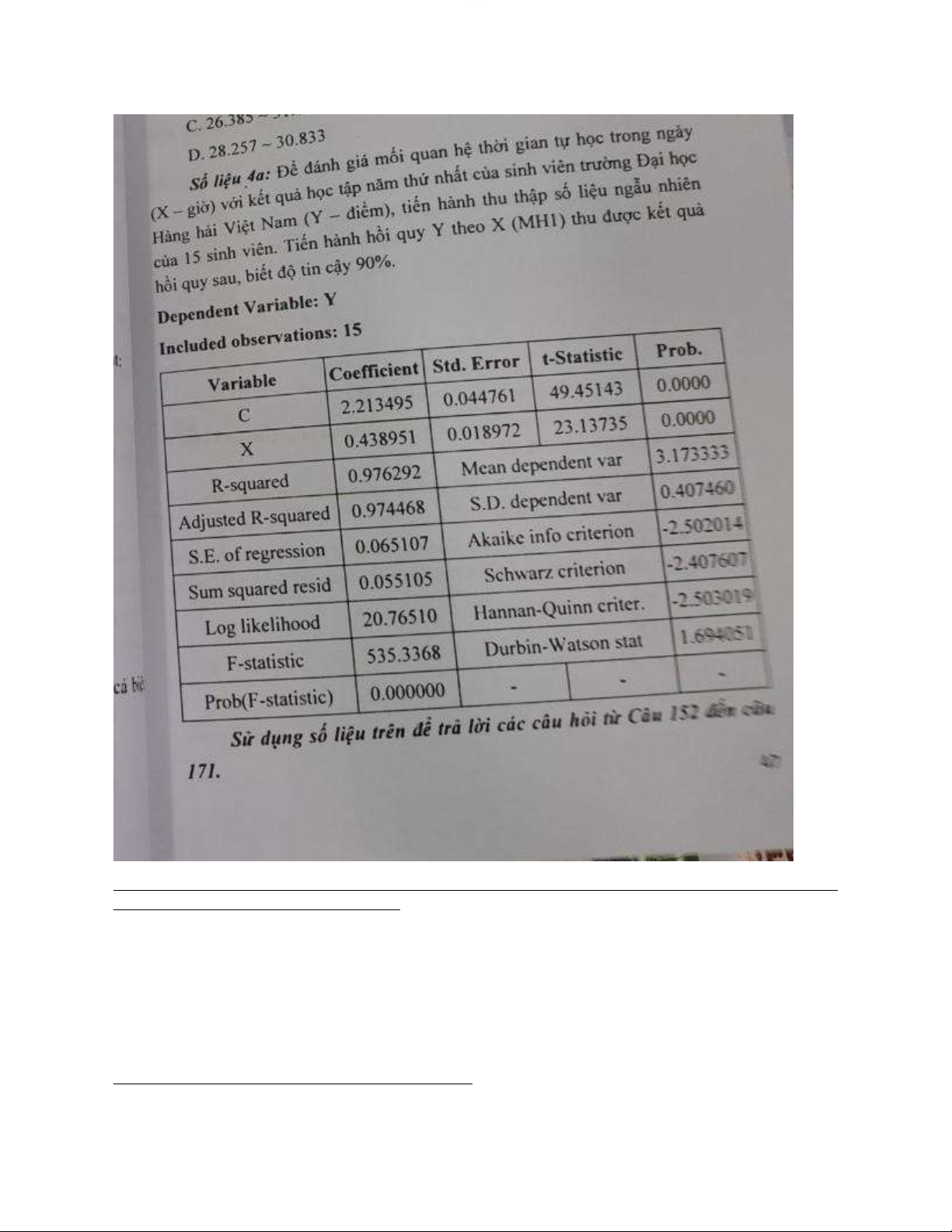 âu 337 : Giá trị t tính toán được cho kiểm định giả thiết C âu 336 A. 20.484 B. -20.484 C. 23.484 D. -23.484 Giải : t = C