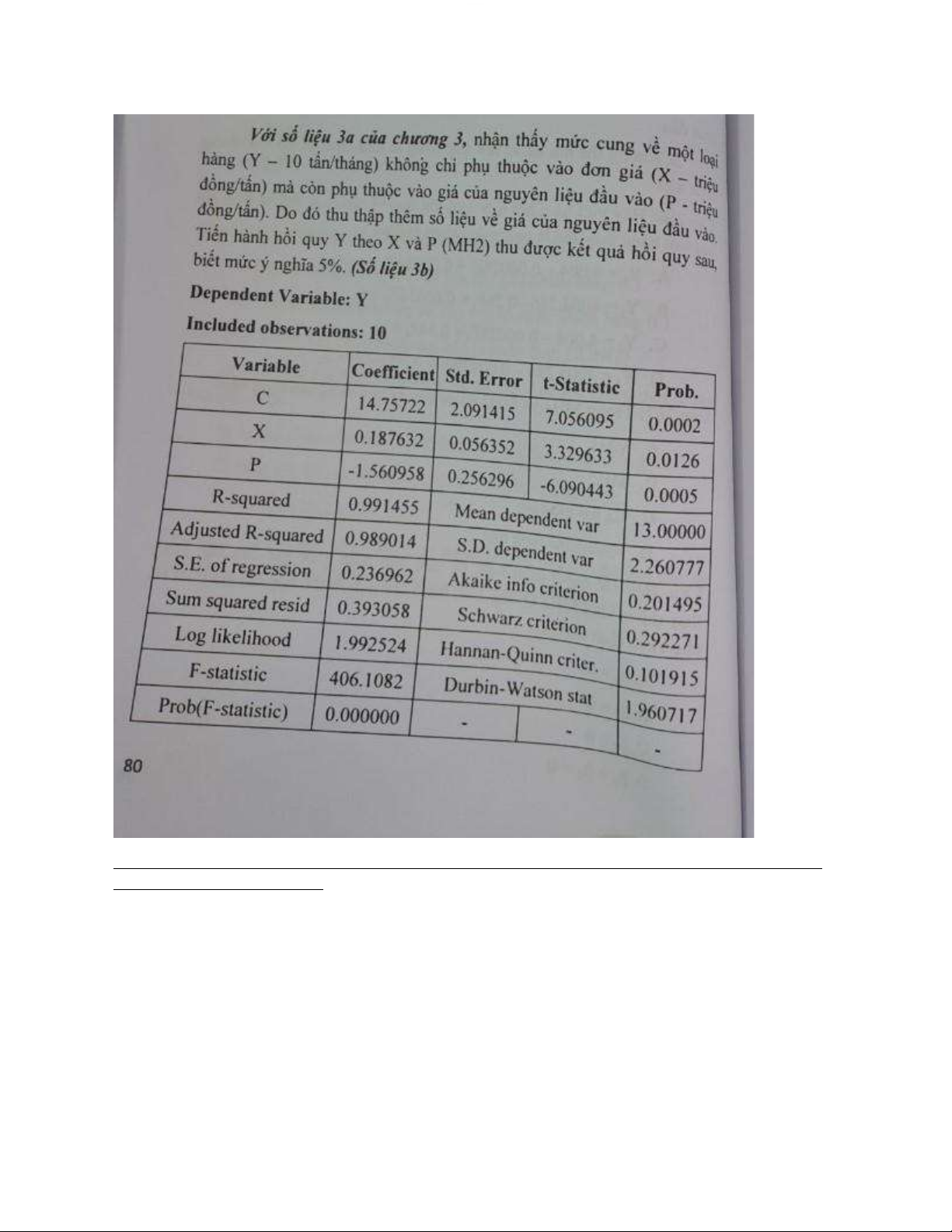 Giải : >0 phù hợp với lý thuyết kinh tế vì khi giá thịt bê tăng thì lượng cung thịt bê sẽ tăng ( lý thuyết kinh