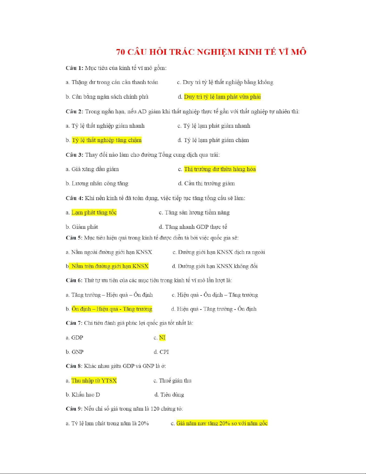 Môn: Kinh tế vĩ mô (TN) 10 tài liệu
