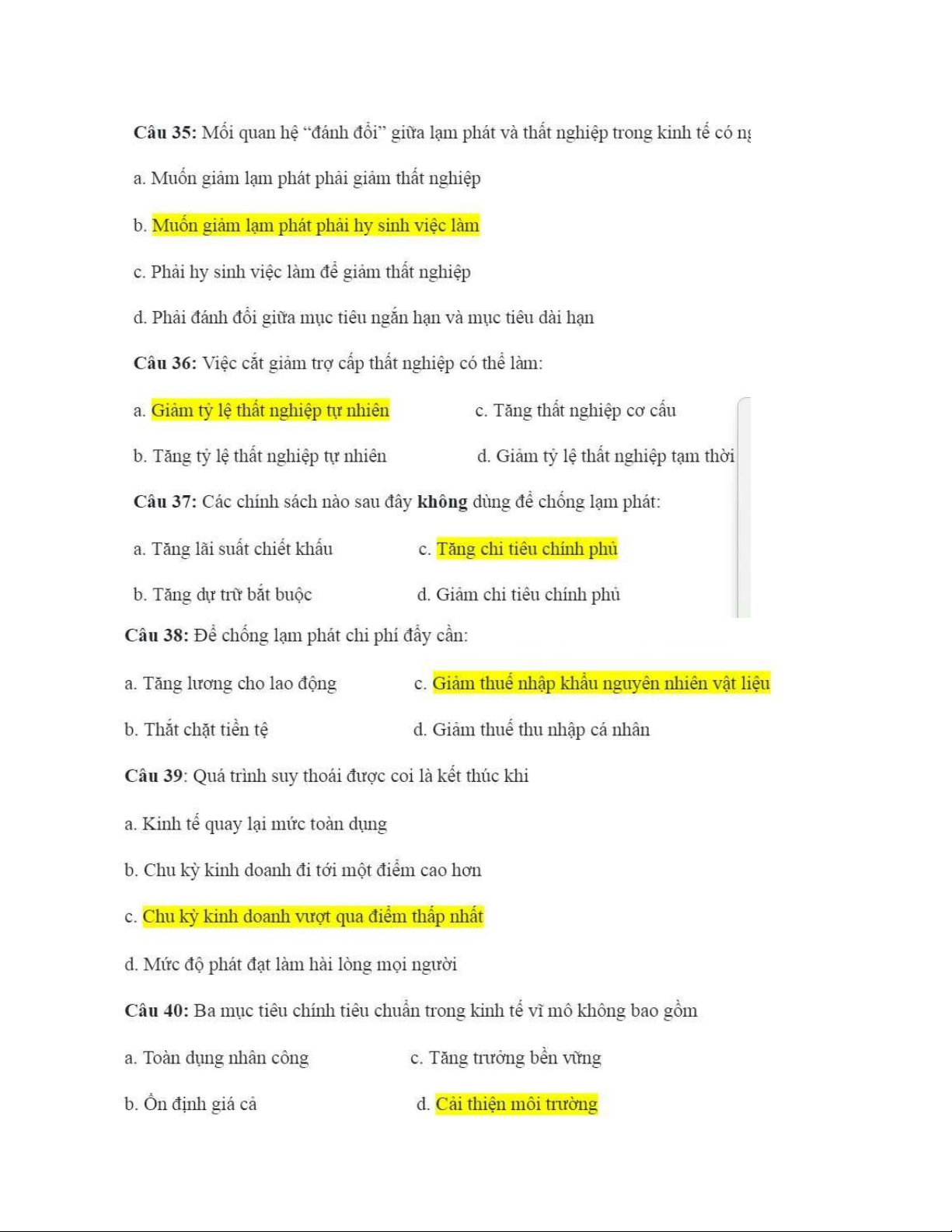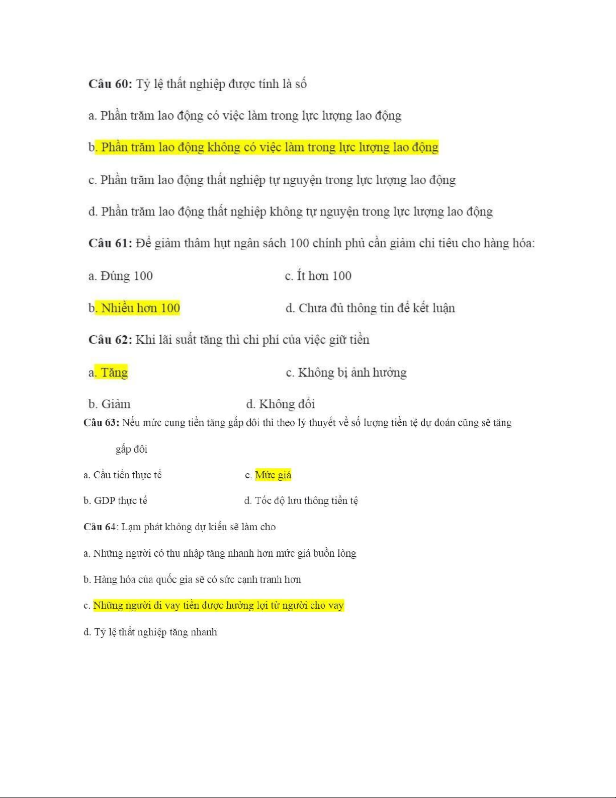 TOP 70 câu trắc nghiệm Môn Kinh tế vĩ mô | Đại học Kinh tế và Quản trị kinh doanh, Đại học Thái Nguyên