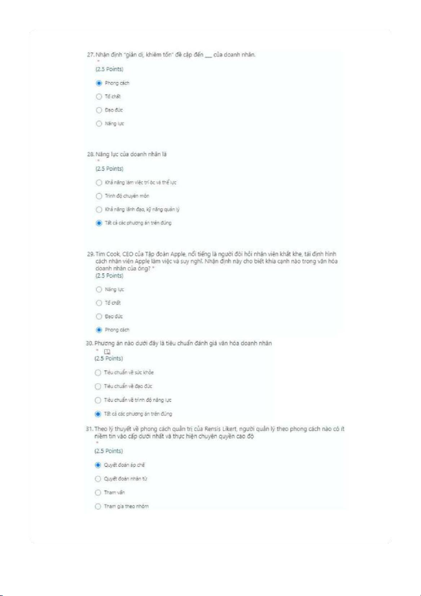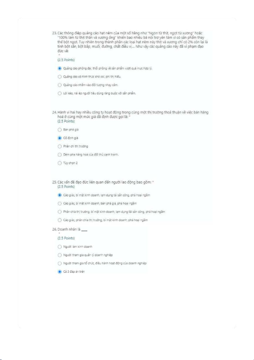 5. Các nguyên tắc và chuẩn mực của đạo đức kinh doanh không bao gồm: (0.5 Points ) Tính trung thực Tôn trọng con người