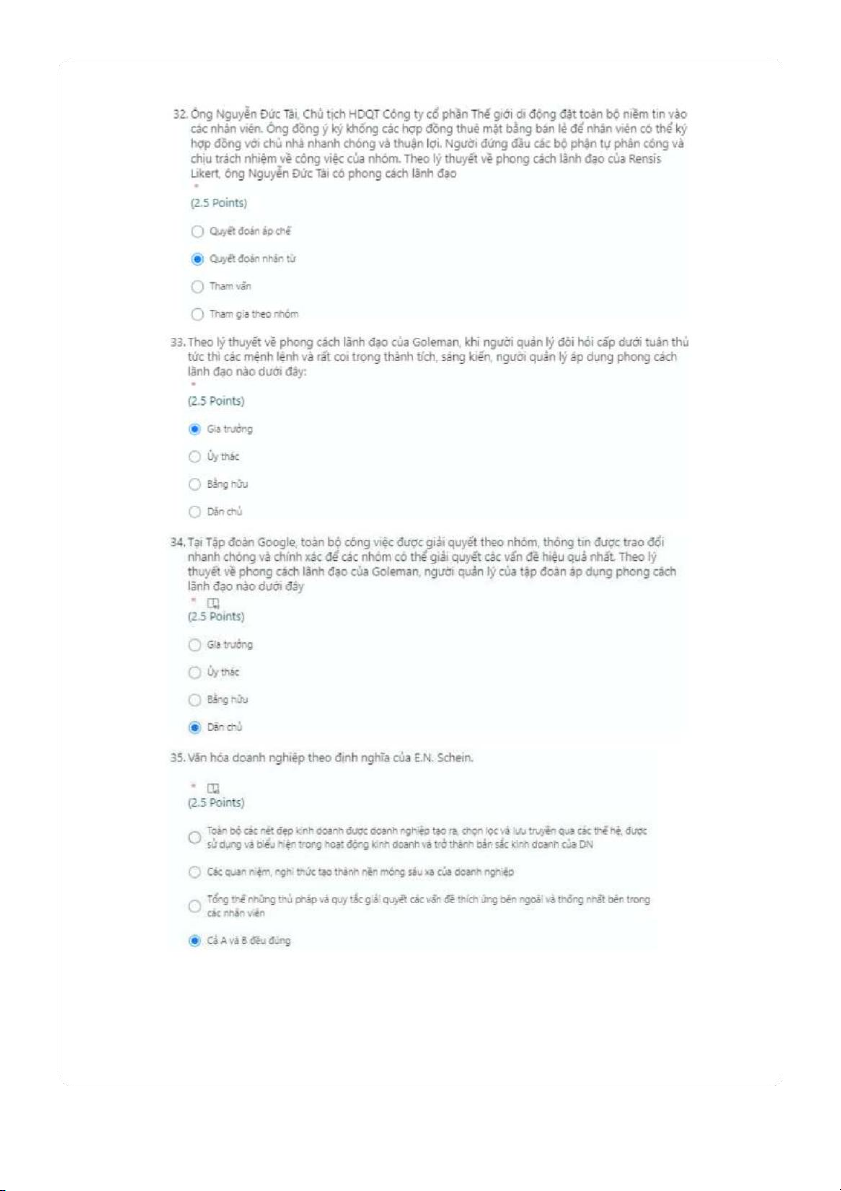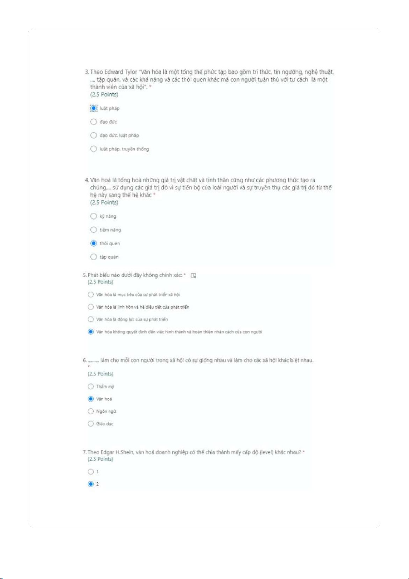 nhận thức, suy nghĩ và tình cảm có tính vô thức, mặc nhiên được công nhận trong doanh nghiệp) (0.5 Points ) quy ước quan niệm chung nội quy quy trình Test 2