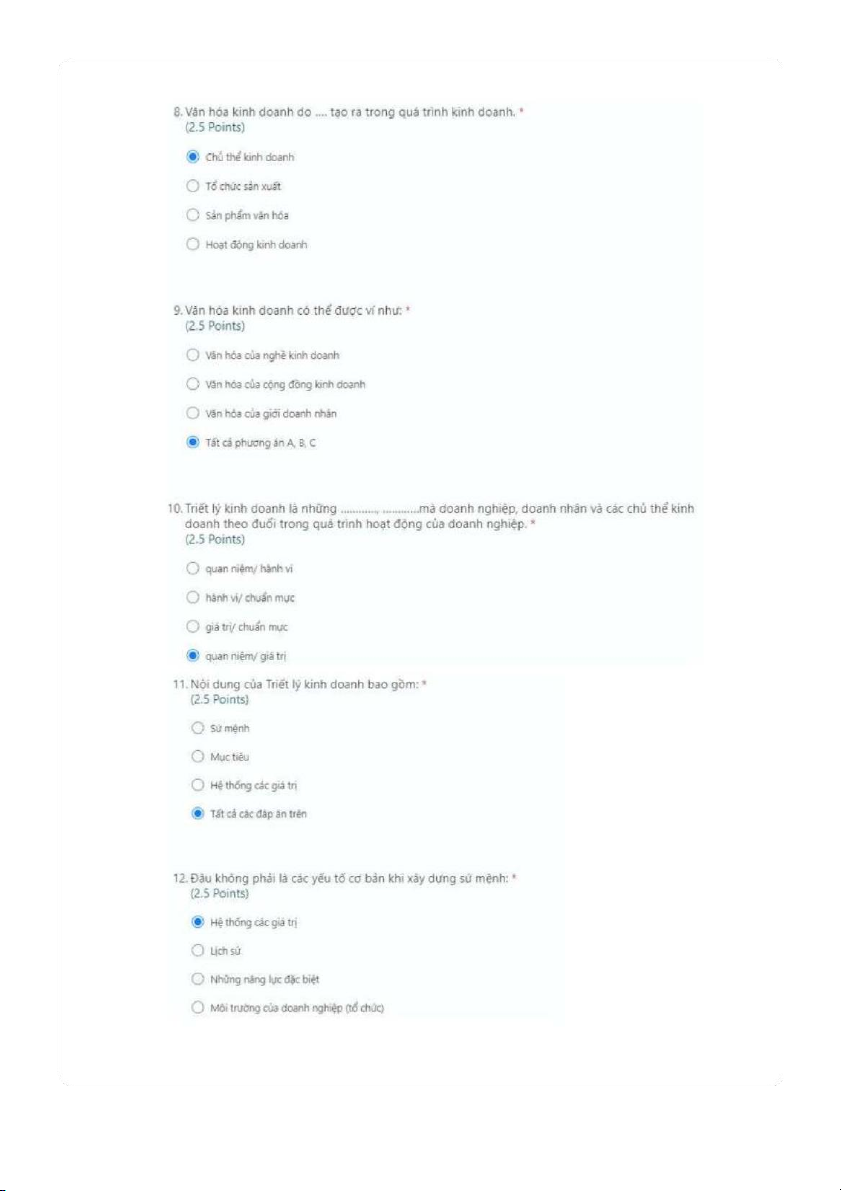 các chủ thể kinh doanh theo đuổi trong quá trình hoạt động của doanh nghiệp. (0.5 Points ) quan niệm/giá trị quan niệm/hành vi hành vi/ chuẩn mực giá trị/chuẩn mực