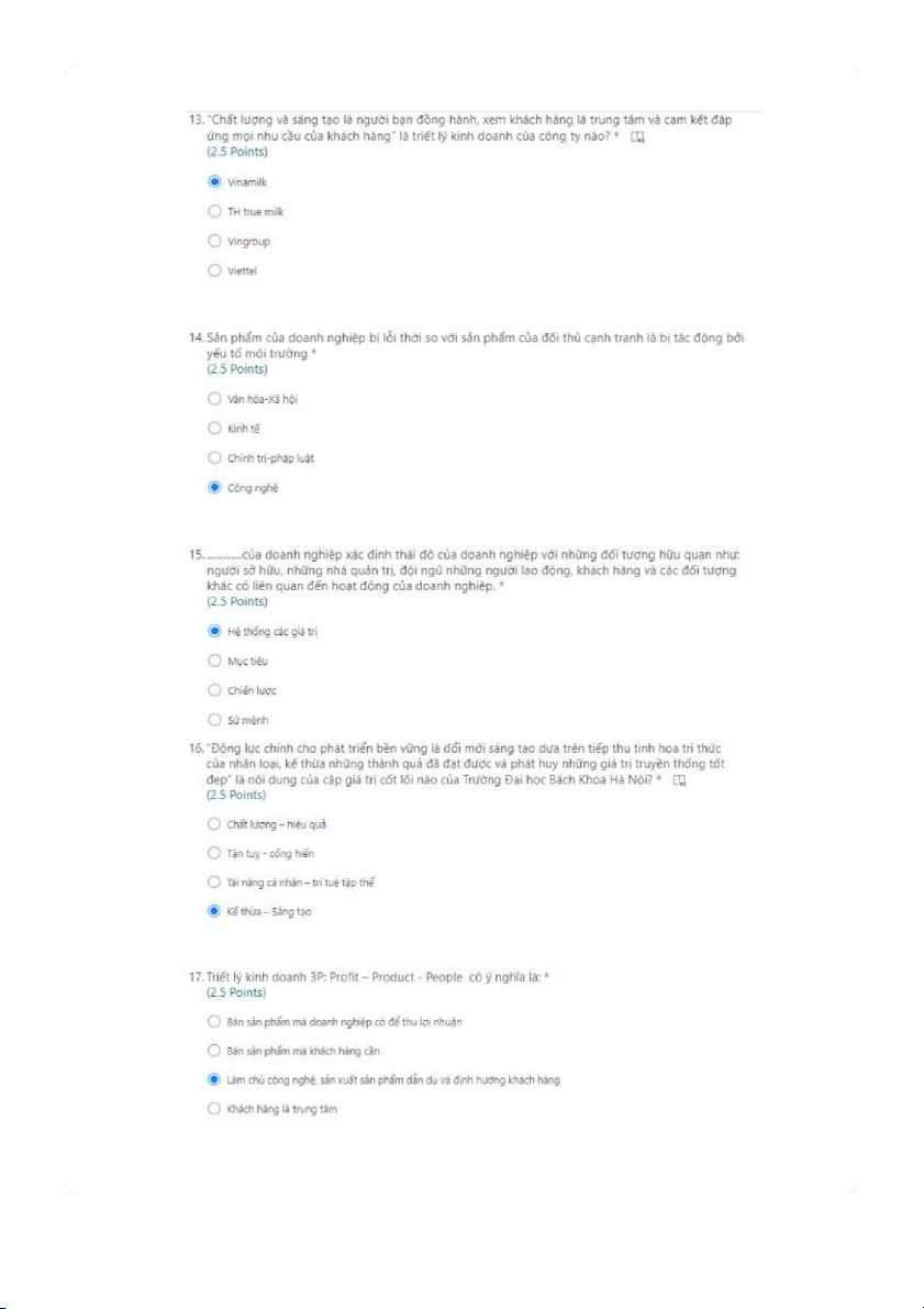 cam kết đáp ứng mọi nhu cầu của khách hàng” là triết lý kinh doanh của doanh nghiệp nào? (0.5 Points ) Vingroup Viettel TH true milk Vinamilk