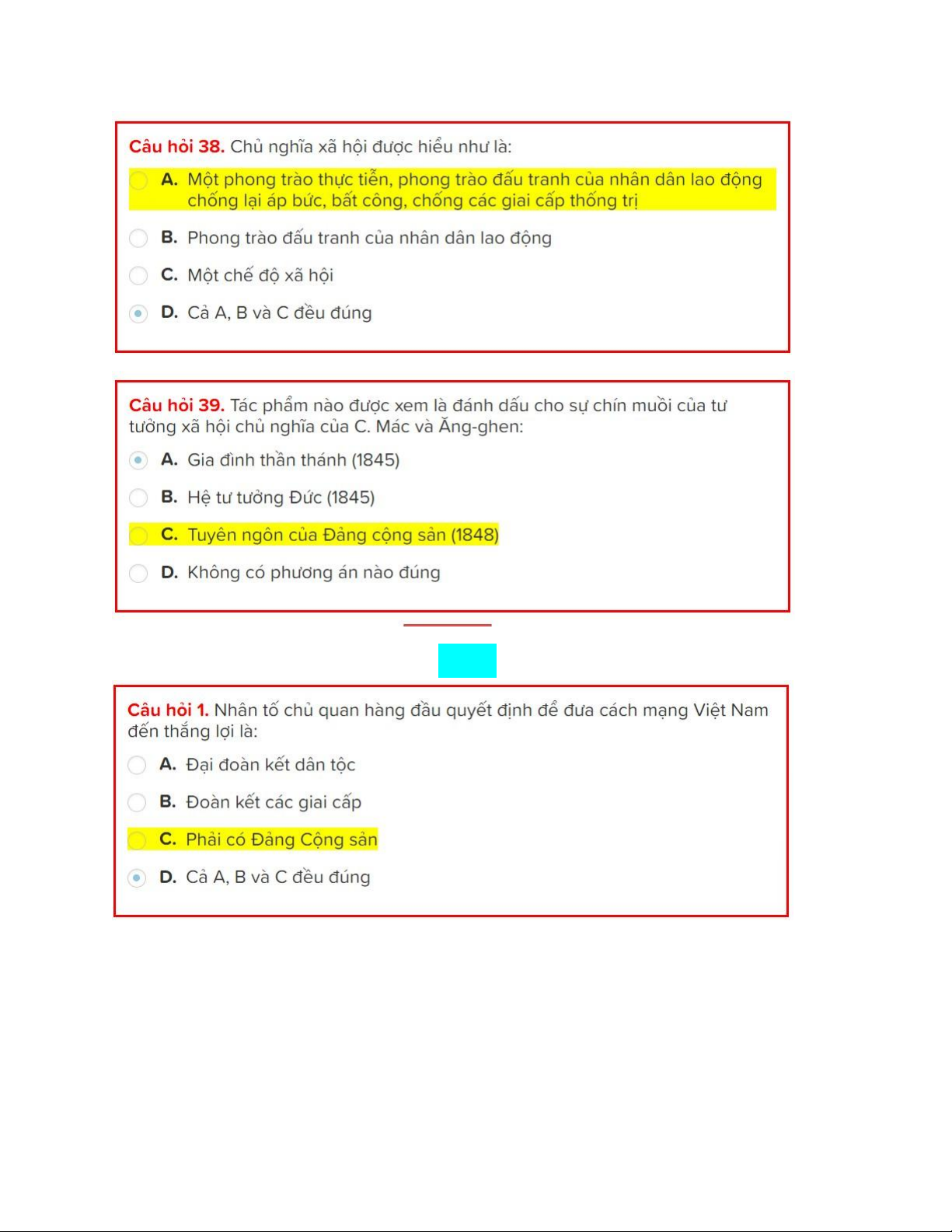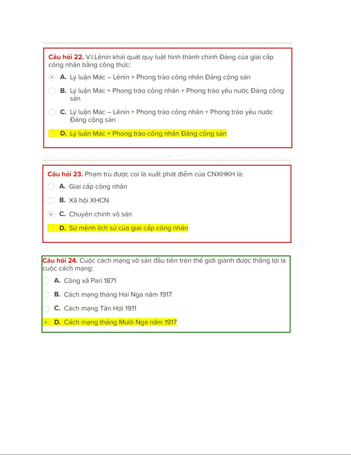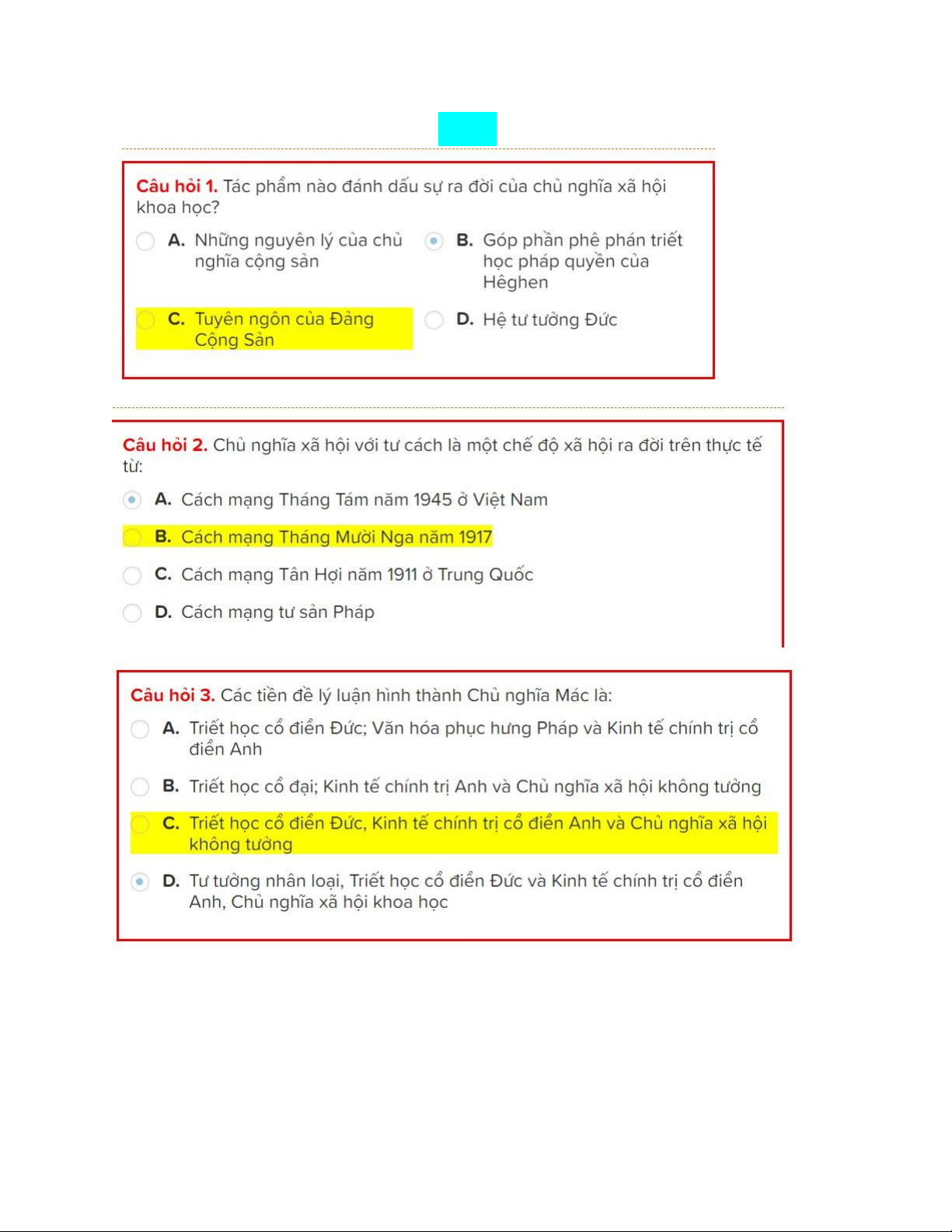 TOP câu hỏi trắc nghiệm có đáp án Môn Chủ nghĩa xã hội khoa học | Trường Đại học Bách khoa - Đại học Quốc gia Thành phố Hồ Chí Minh