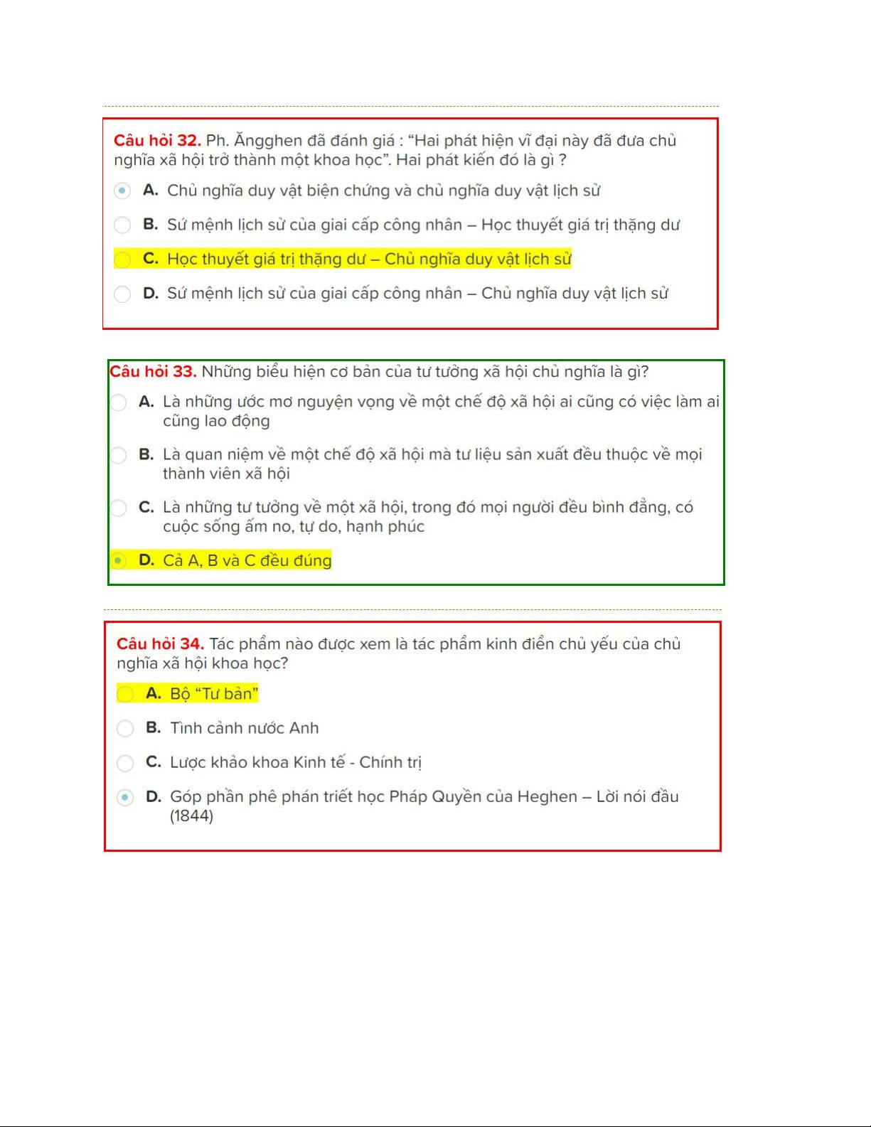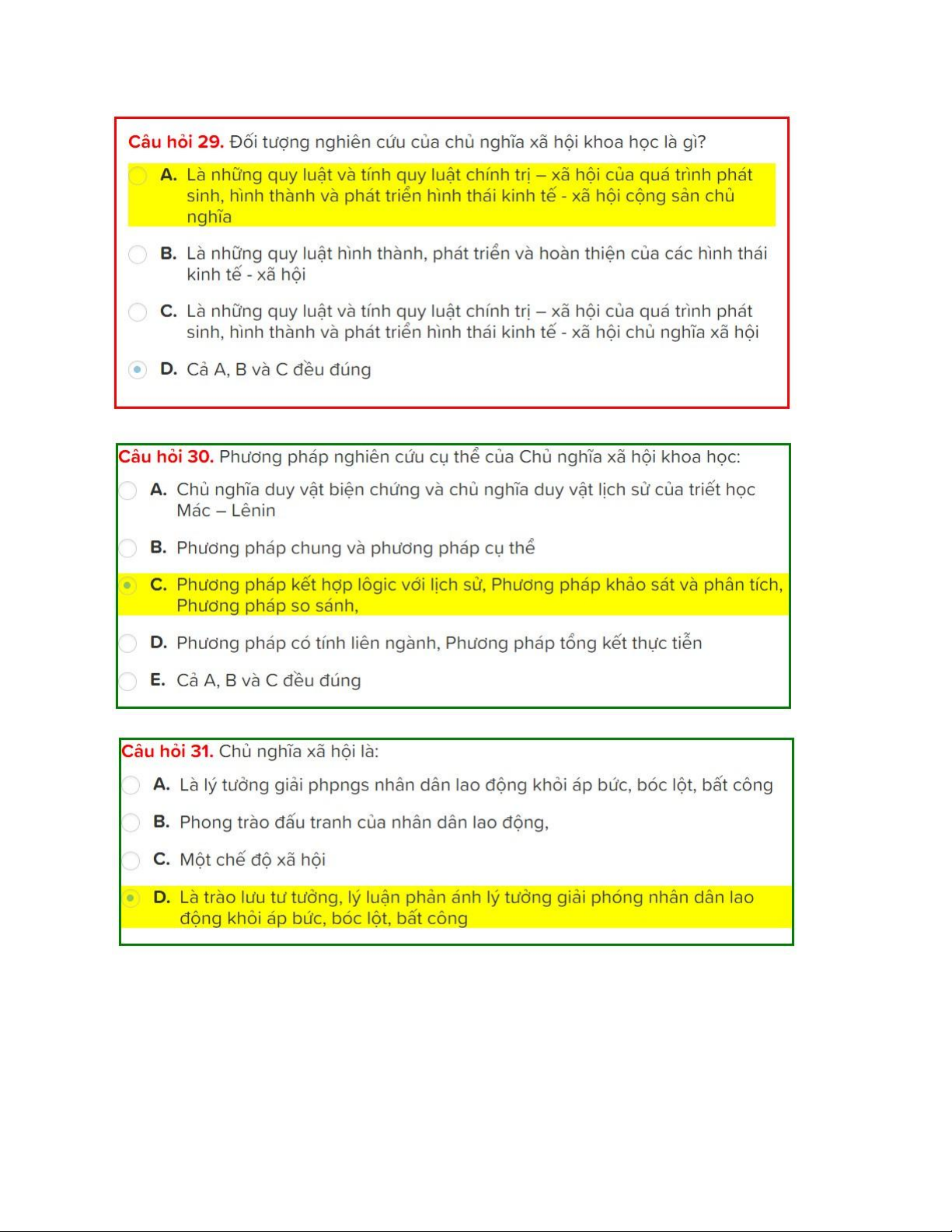TOP câu hỏi trắc nghiệm có đáp án ôn tập Môn Chủ nghĩa xã hội khoa học | Trường Đại học Bách khoa - Đại học Quốc gia Thành phố Hồ Chí Minh