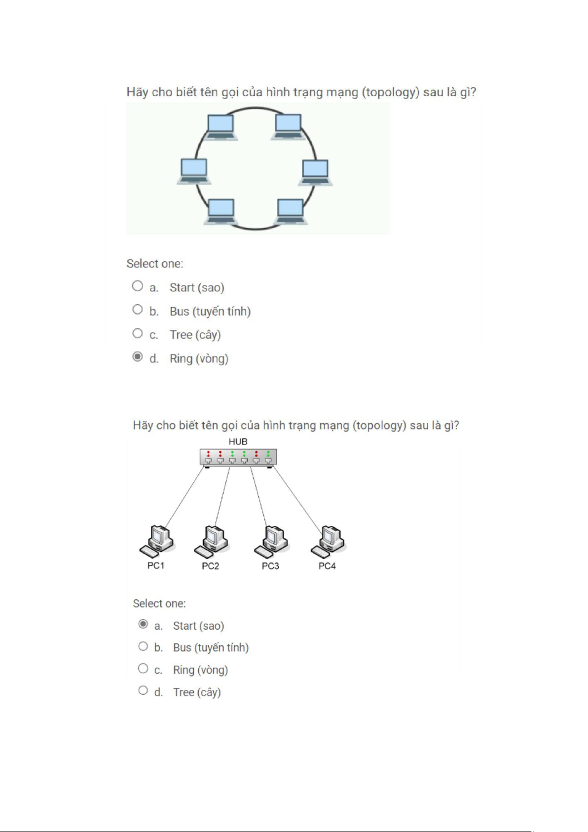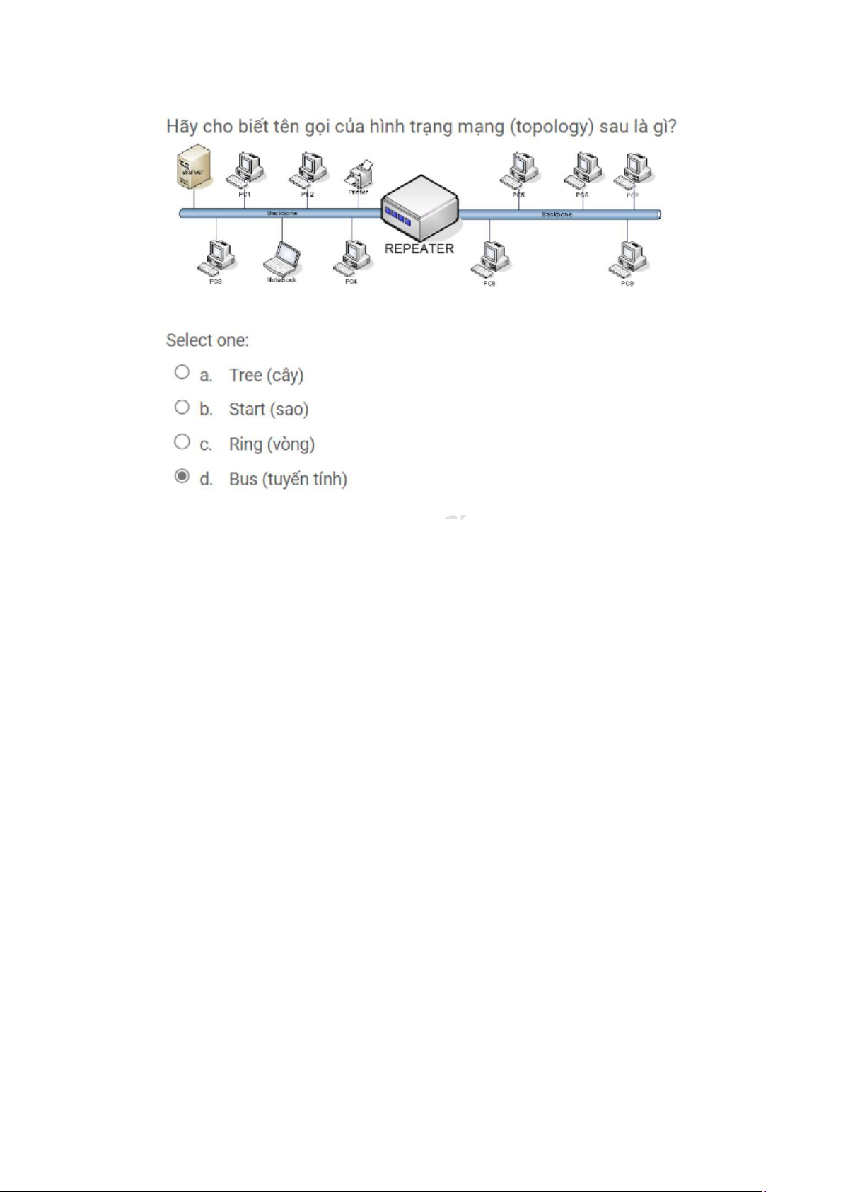 mạng”, mệnh đề này đề cập đến hình trạng mạng? A. Star (sao) B. Tree (cây) C. Ring (vòng) D. Bus (tuyến tính)