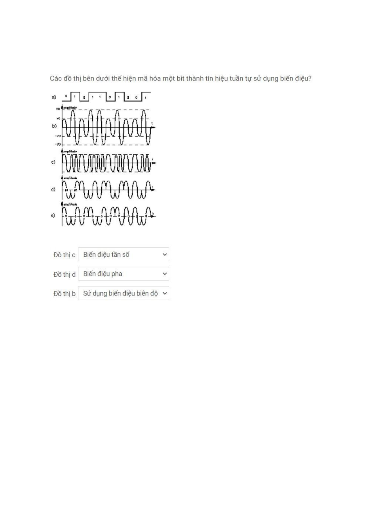 18. Khi sử dụng tín hiệu tuần tự để mã hóa đường truyền, ta có thể sử dụng? Select one: a. Biến điệu pha b. Biến điệu biên độ