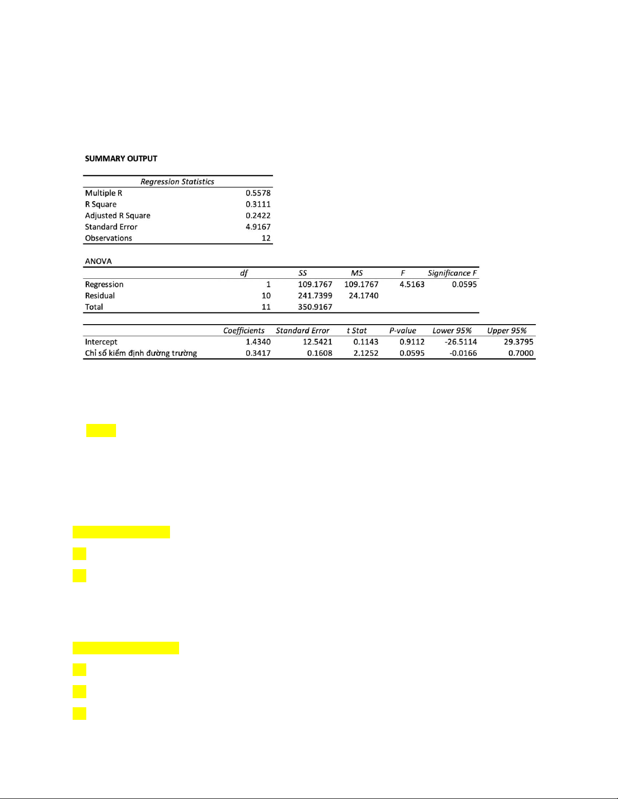 Hệ số xác định của phương trình hồi quy này bằng bao nhiêu? A. 0.5578 B. 0.3111 C. 0.2422