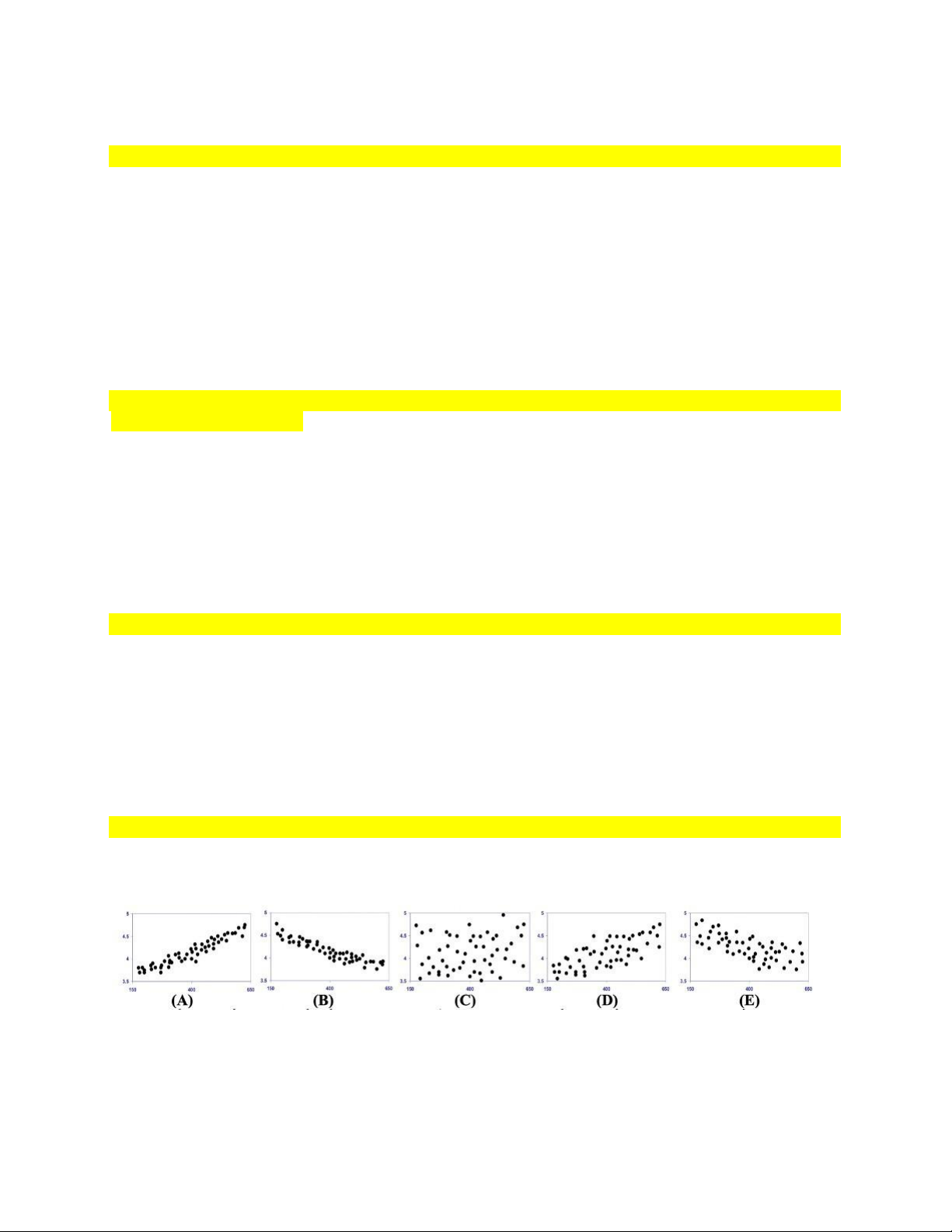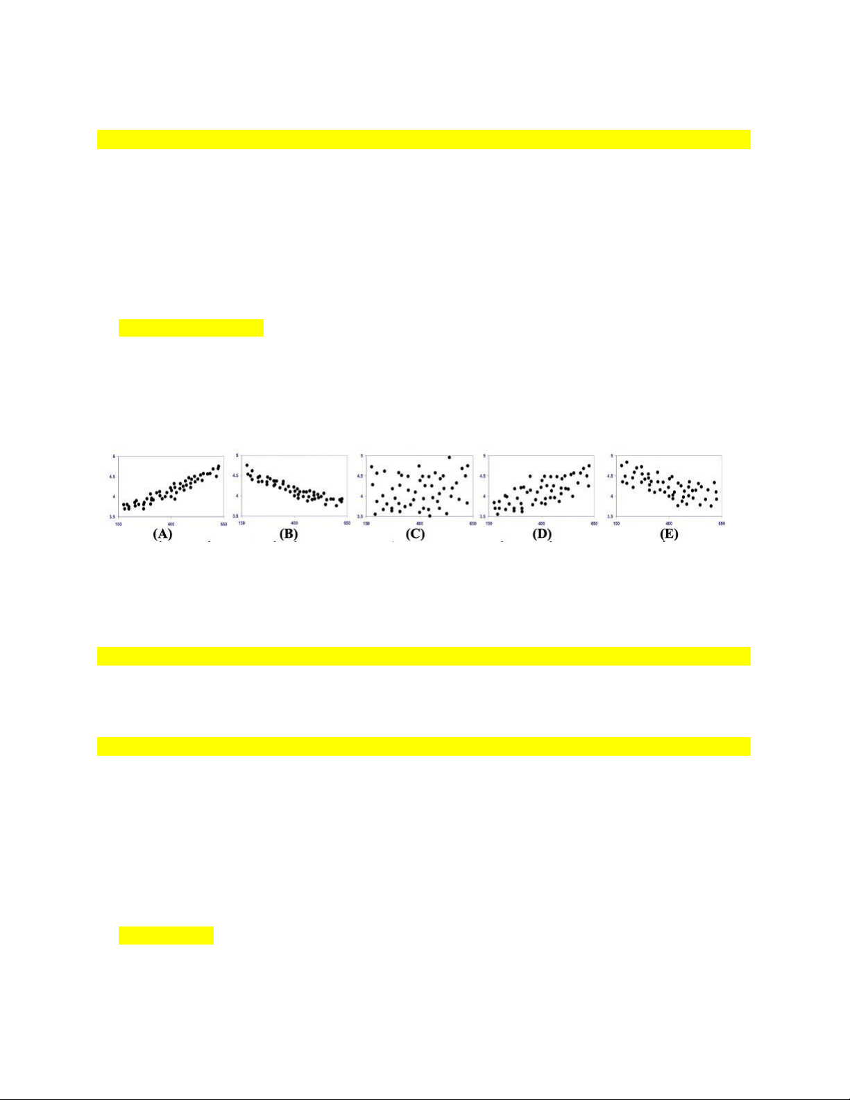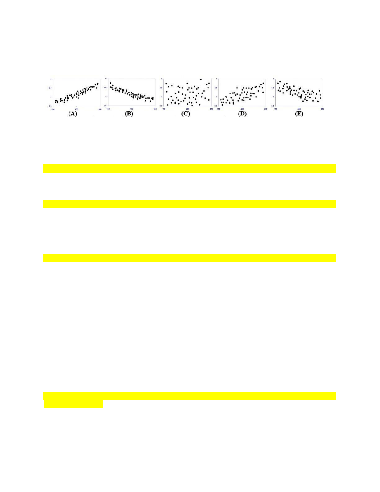 Câu 56: Cho các biểu đồ A, B, C, D và E, câu nhận định nào dưới đây là SAI về mối quan hệ giữa hai biến nghiên cứu?