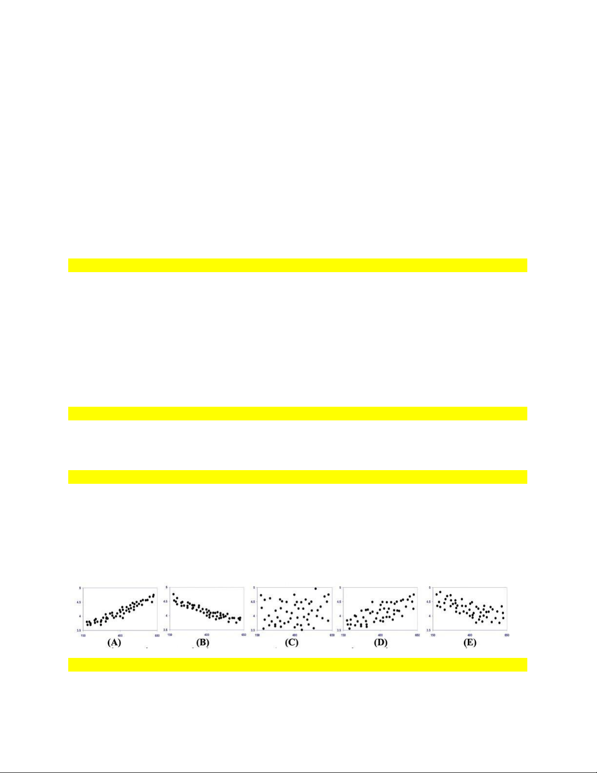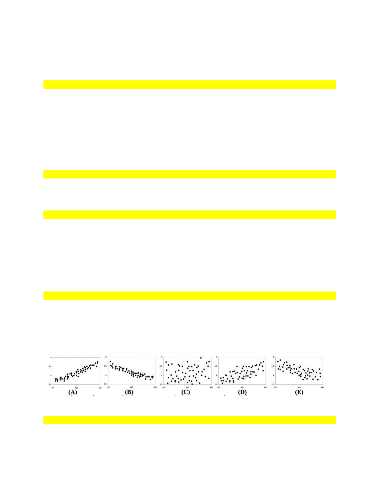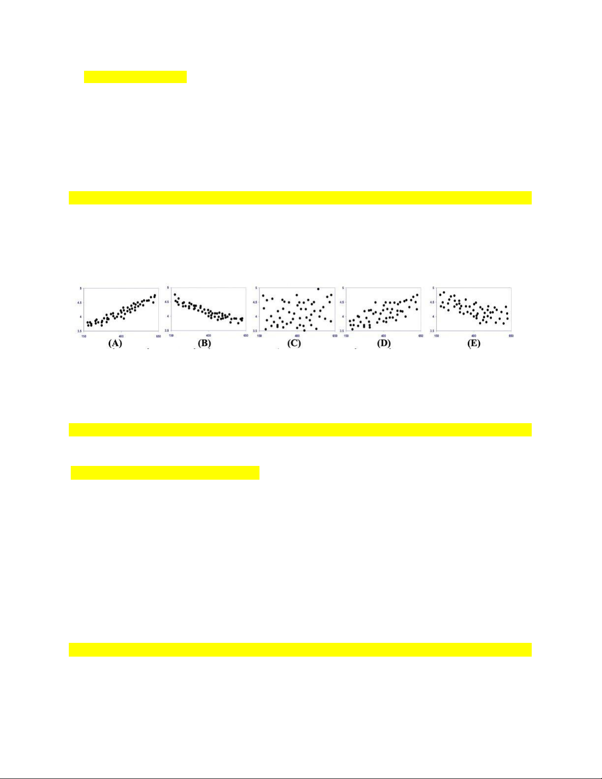 Câu 56: Cho các biểu đồ A, B, C, D và E, câu nhận định nào dưới đây là SAI về mối quan hệ giữa hai biến nghiên cứu?