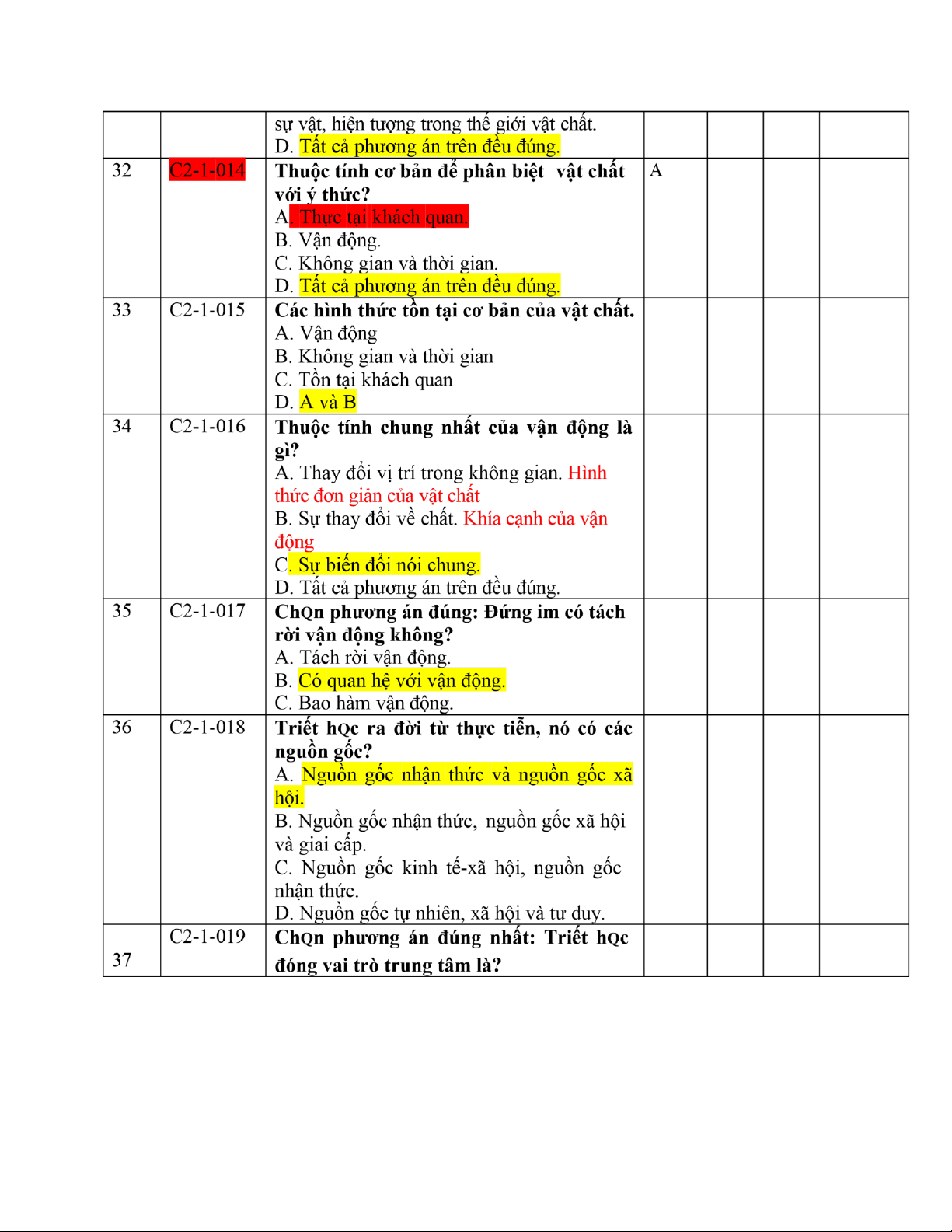 MÃ HÓA NGÂN HÀNG CÂU HỔI THI HẾT HỌC PHẦN TRIẾT HỌC MÁC - LÊNIN